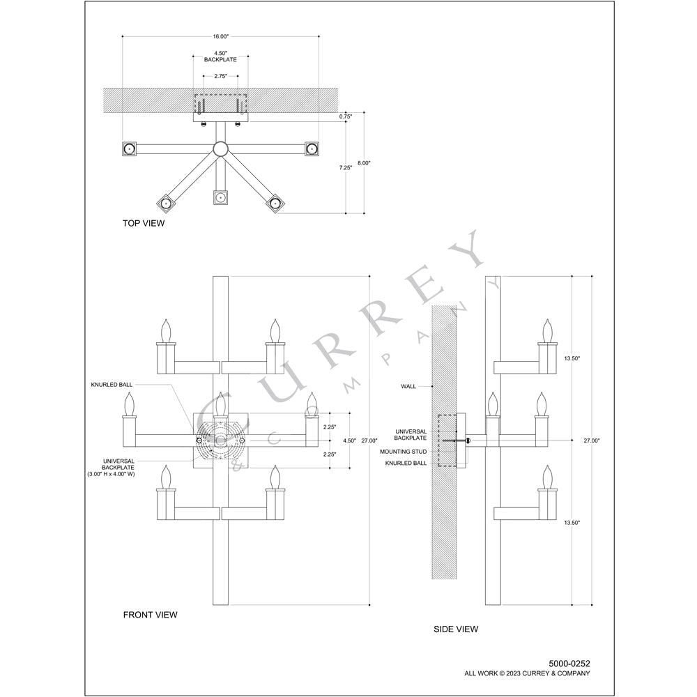 Currey & Company Andre Brass 7-Light Wall Sconce