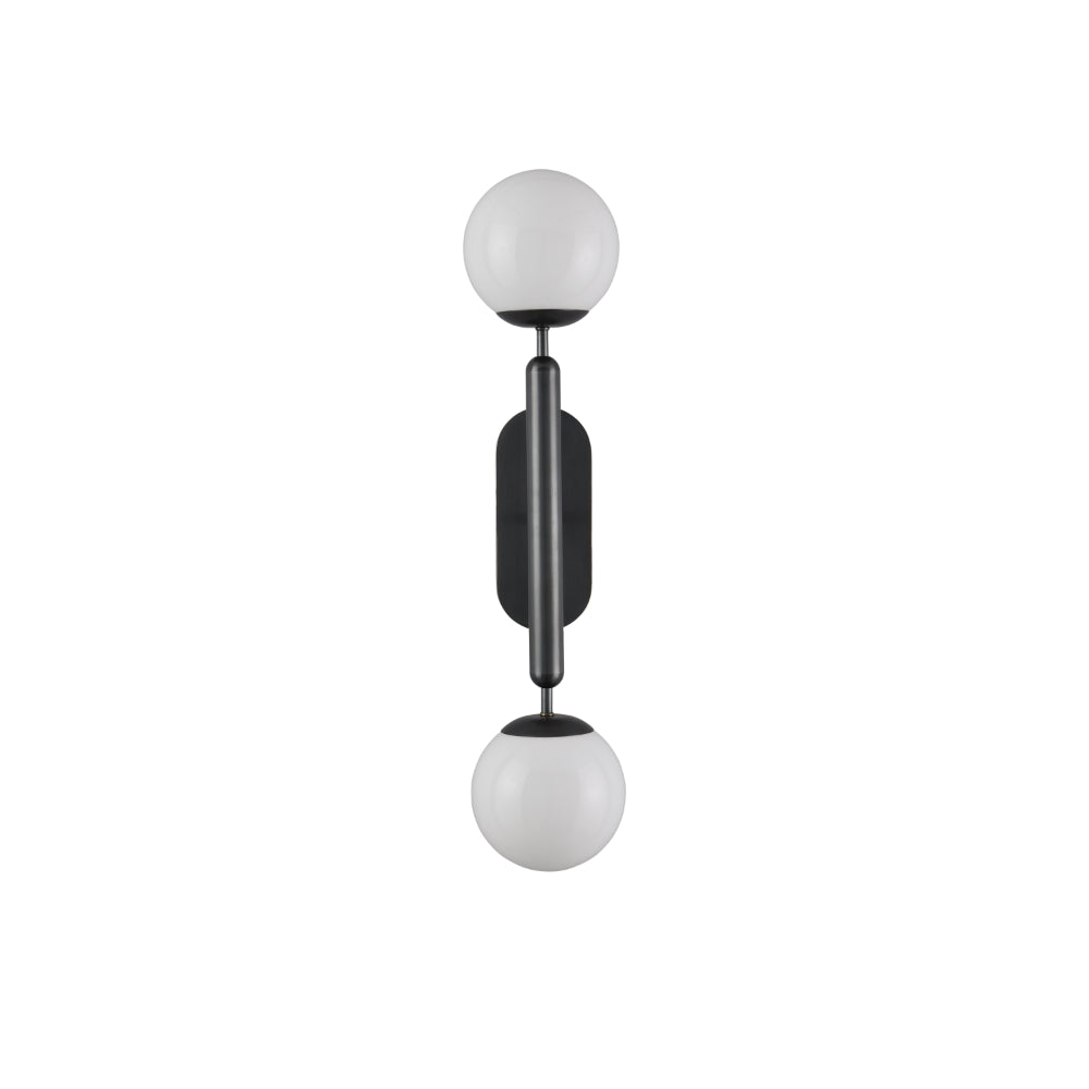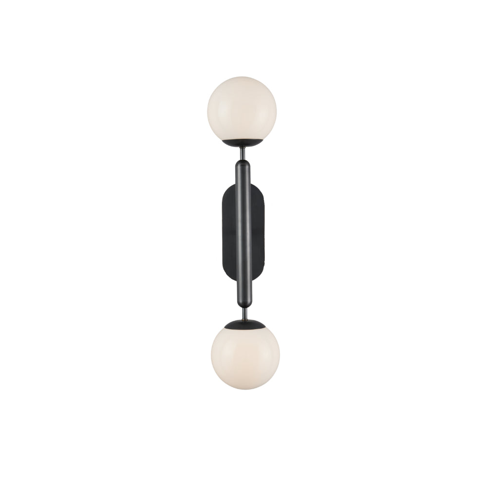 The Barbican Double-Light Nickel Wall Sconce features a tubular stem that balances cup-like shapes, into which translucent glass globes nestle. Keeping the design minimal, the button-like hardware is streamlined to perfection. This silver sconce is part of the Barbican Collection of damp-rated lighting, designed specifically for bathrooms. The Barbican can also be mounted sideways to fit over a mirror.