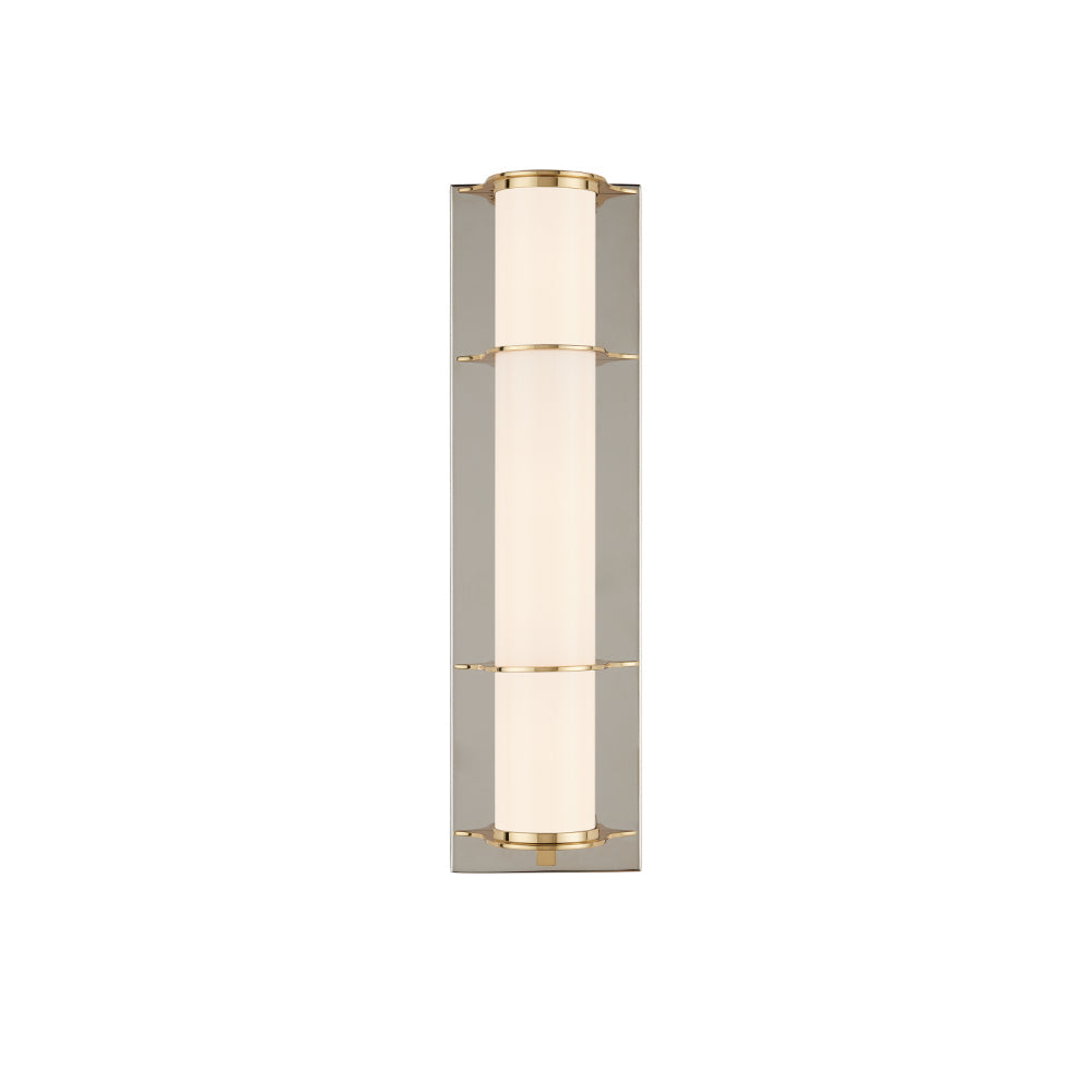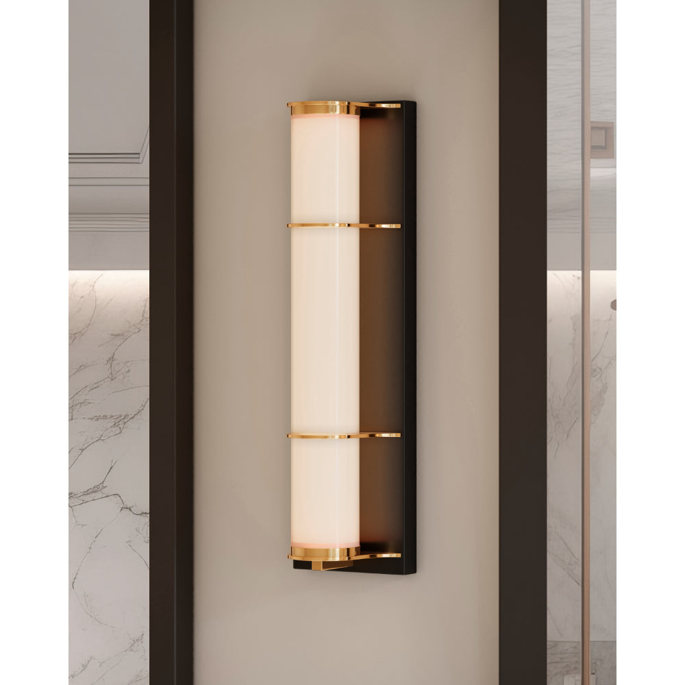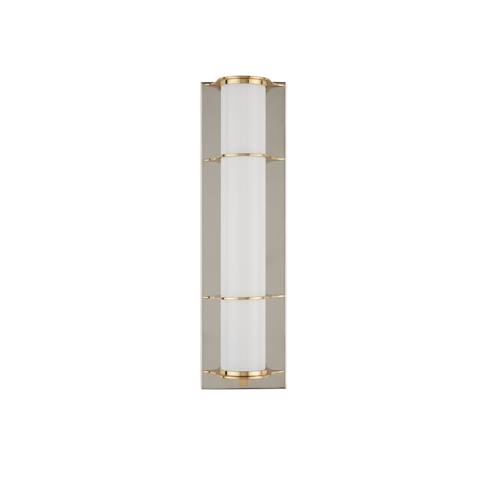 The Blaine Brass Bath Wall Sconce has a tubular design, with the milky glass tube set into the metal rings that match the wallplate in a polished brass finish. Perfect for lighting up a bathroom vanity, the Blaine has a simple design that will work well within a number of design styles.