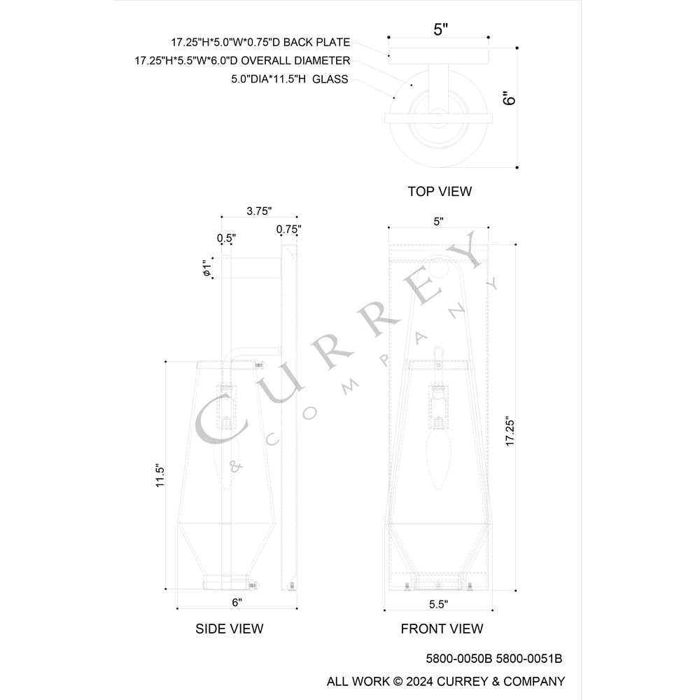 - Overall Product Dimensions: 17.25"h x 5"w x 6"d