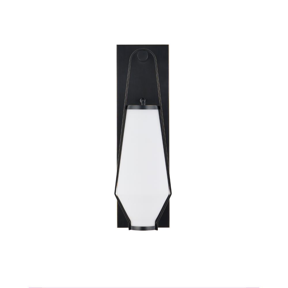 The Brompton Brass Bath Wall Sconce dangles its shade like it is balancing a canister filled with illumination. Designed with a slim, rectangular wall-plate made of wrought iron in an antique brass finish, the knob from which the shade hangs and the handle that cradles it are also in metal in the same finish. The opacity of the beautifully shaped shade on the gold wall sconce creates a luminous glow.