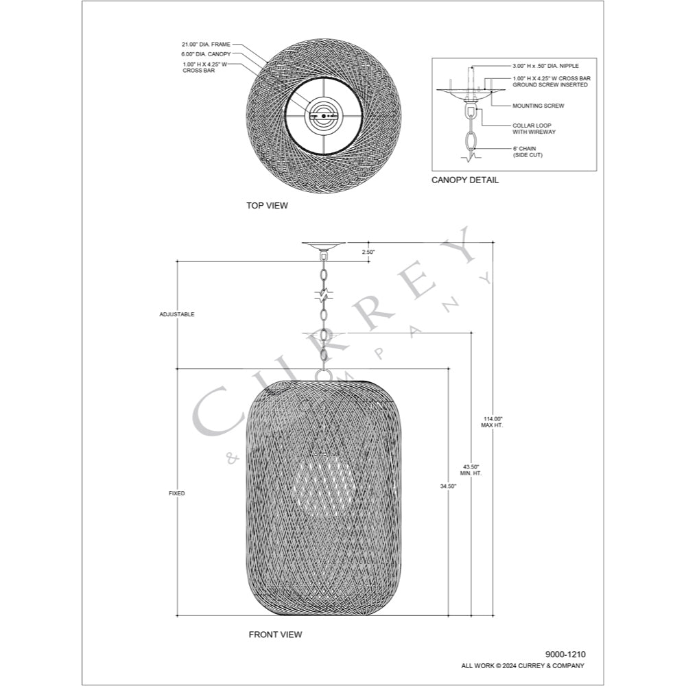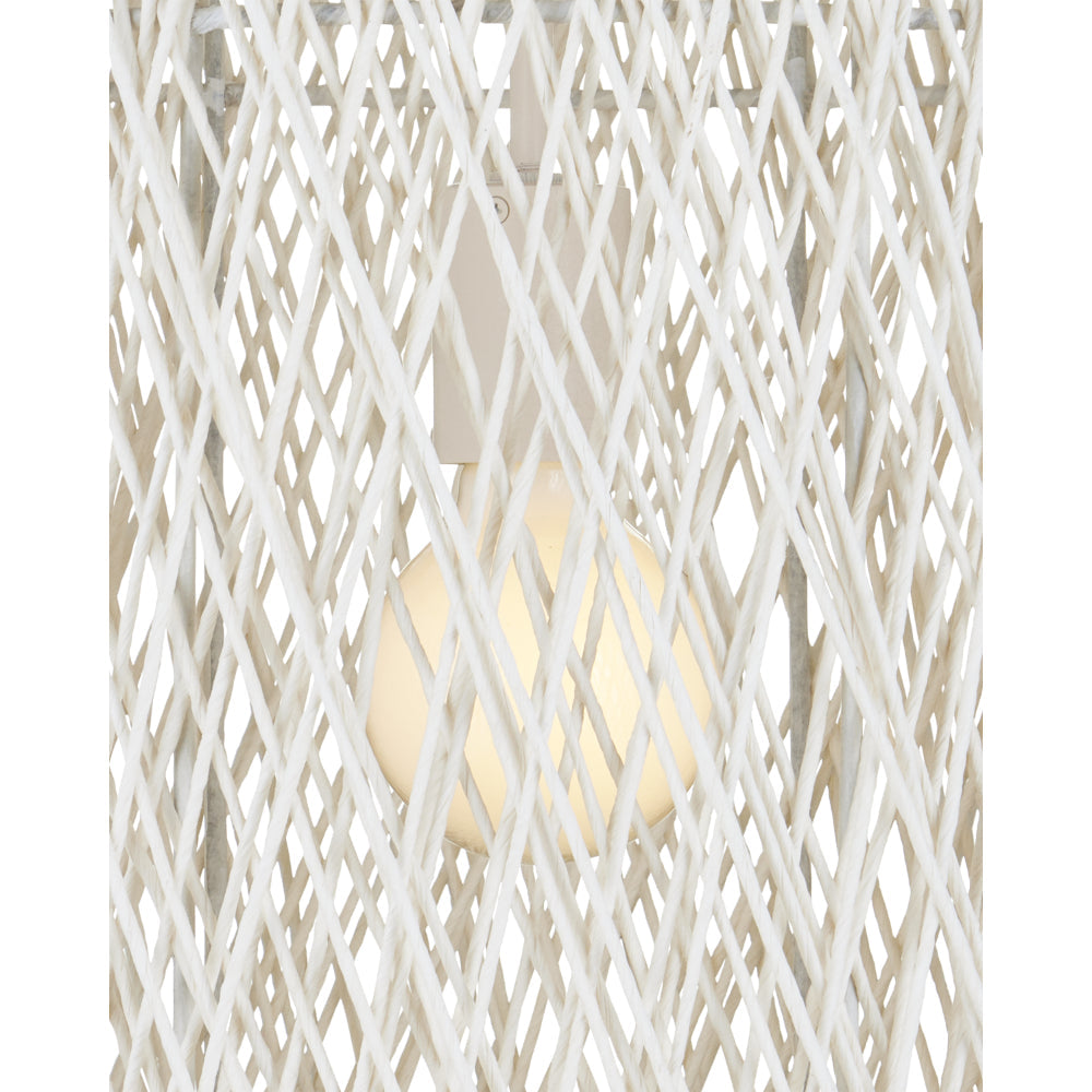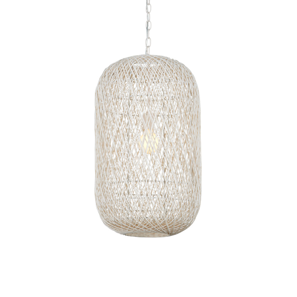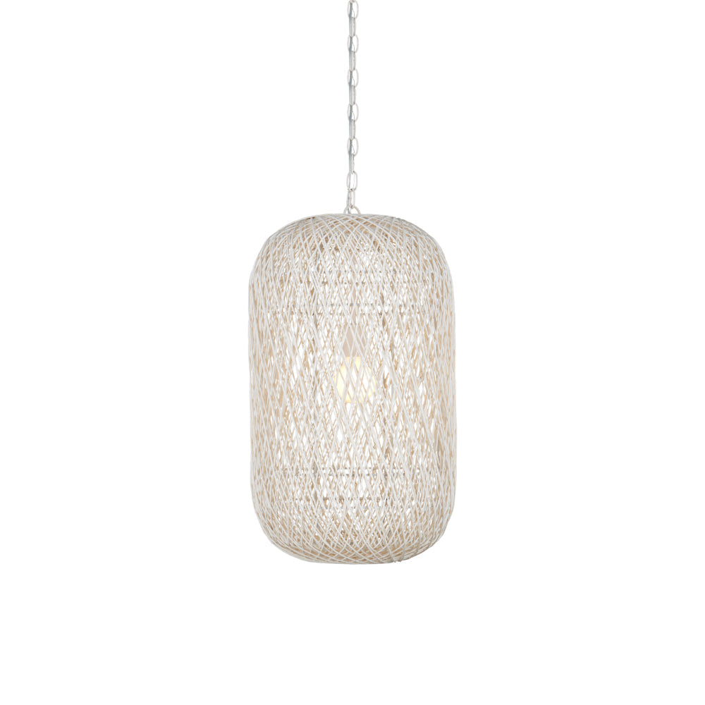The Cocoon Large Pendant was inspired by a butterfly in chrysalis but it is meant for grander-scaled duties as a light fixture. The white pendant has a wrought iron frame covered in a vanilla finish that is beautifully wrapped in Kraft paper twine in a cream finish. The skill and patience required to create such an even flow of string makes this an artisanal piece. This large version of the Cocoon has a white glass globe in its interior to evenly distribute the light. Adjustable from 43.5" to 114" with use of included chain/rod kit/cable. If your space calls for a longer drop, additional chain/rods/cable is available for purchase.