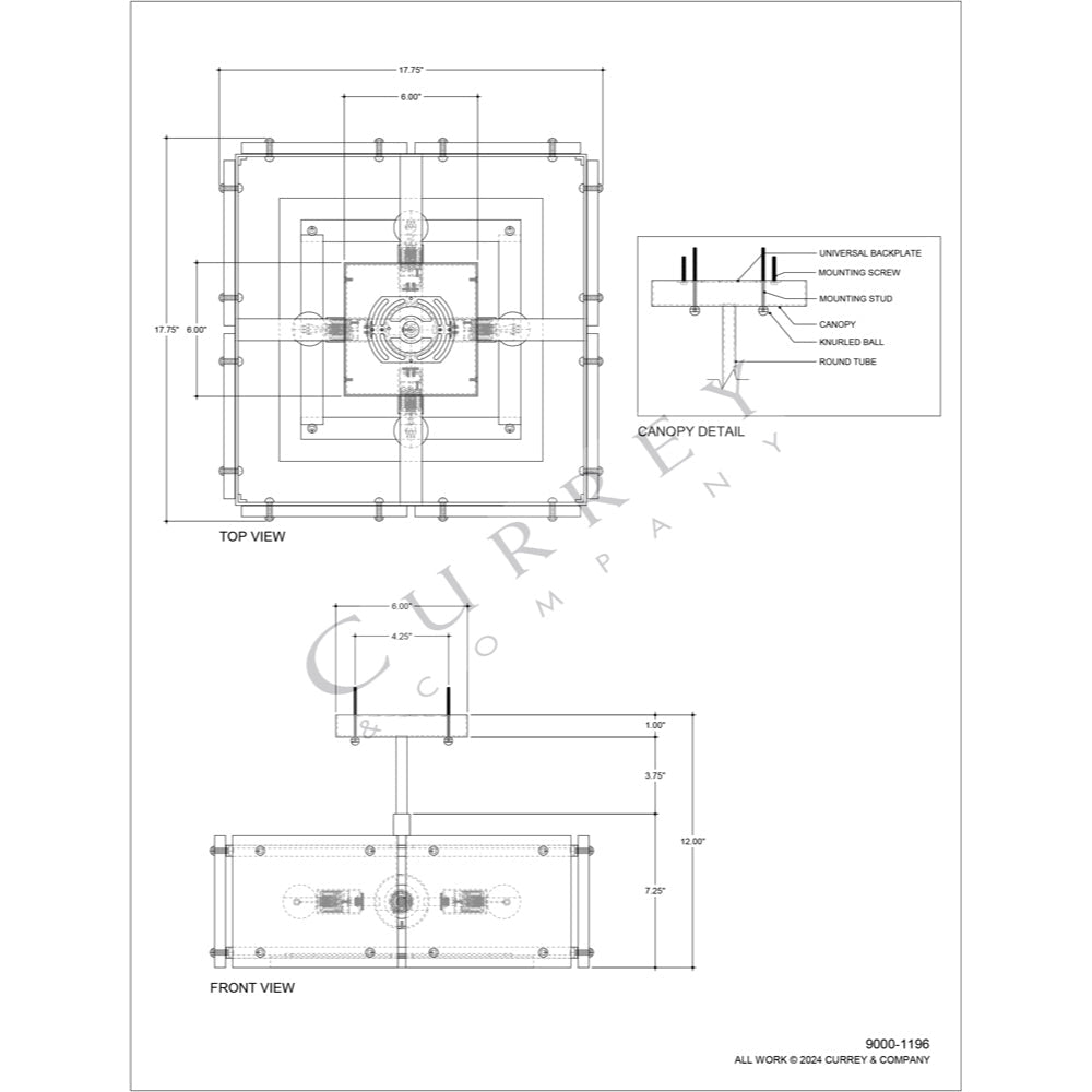 Currey & Company Countervail 17.75" 4-Light Square Chandelier