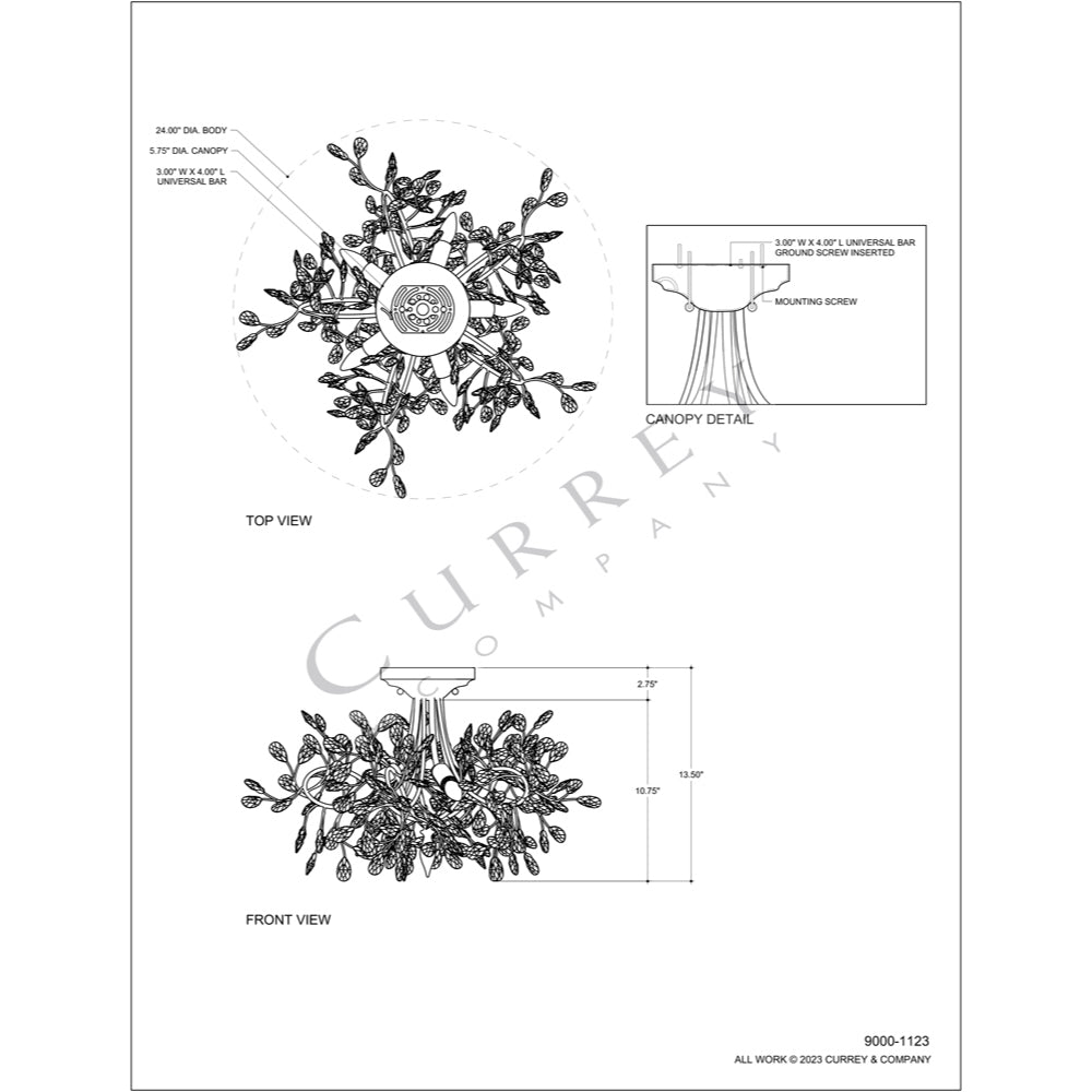 Currey & Company Crystal Bud 24" 5-Light Semi-Flush Mount