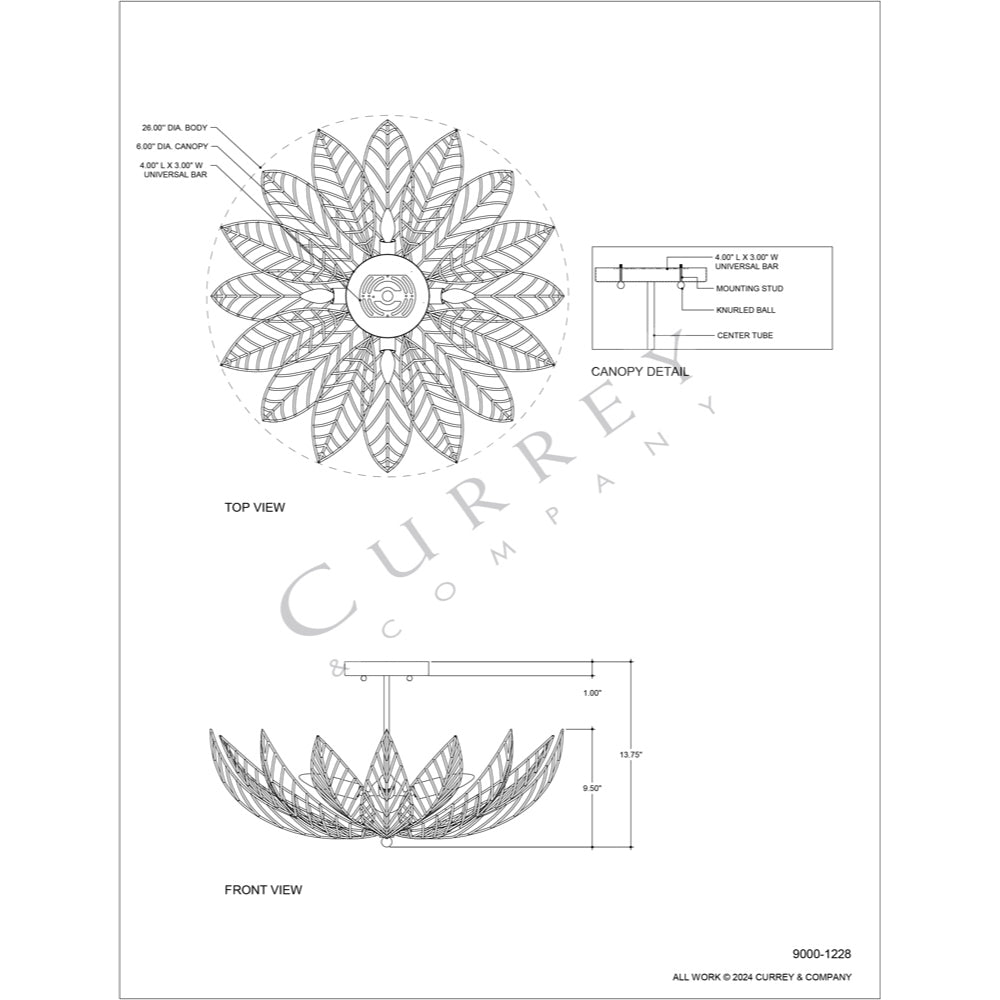 Currey & Company Leaflace 26" Gold 4-Light Semi-Flush Mount