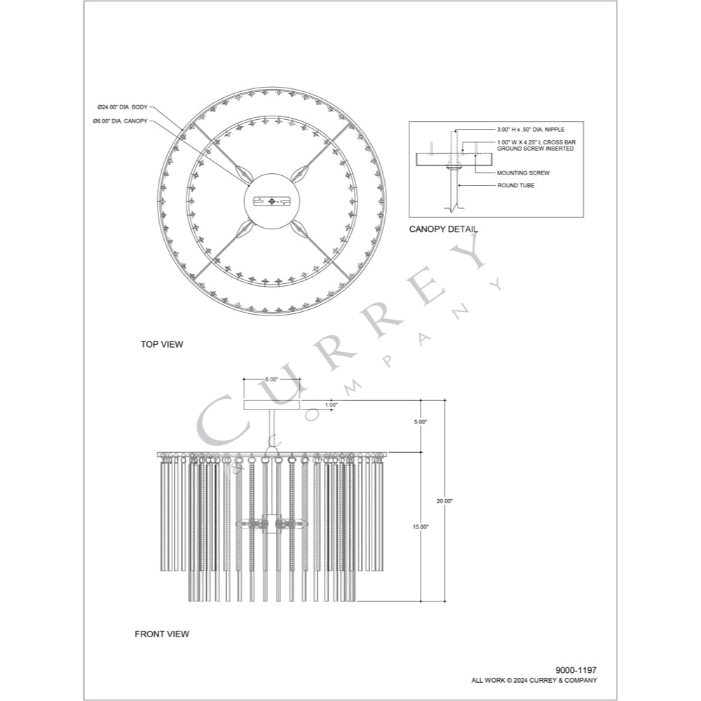 Currey & Company Mantra 24" Gold 3-Light Semi-Flush Mount