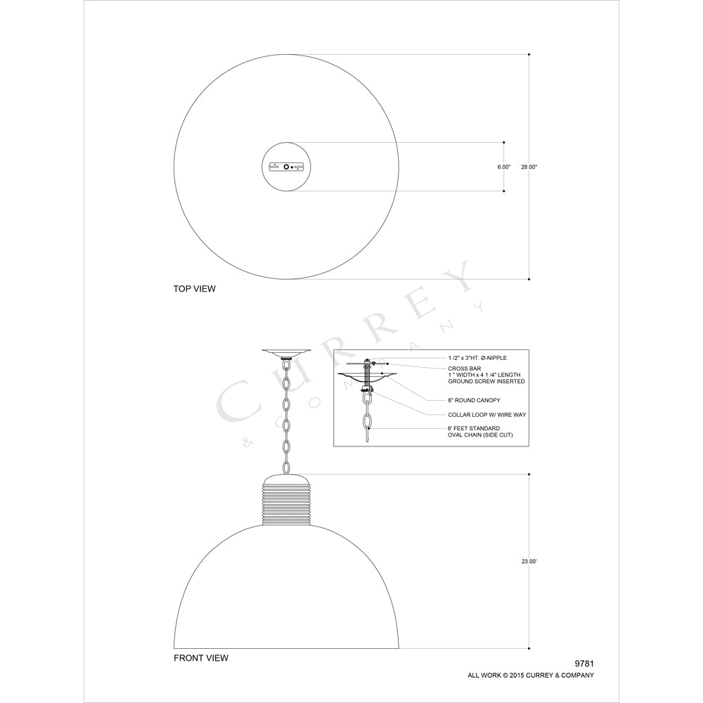 The Saga Pendant has a black steel finish on the outside of its shade and a golden glow on the interior to add contrast to the simple design. Besides the interplay of the dark and bright finishes, a design note is the scored fob connecting the pendant to its chain. Adjustable from 30" to 97" with use of included chain/rod kit/cable. If your space calls for a longer drop, additional chain/rods/cable is available for purchase.
