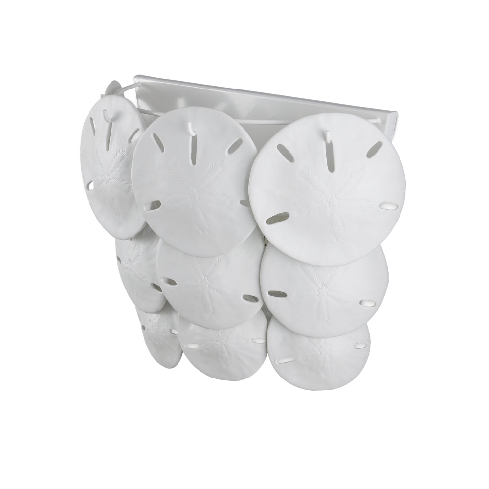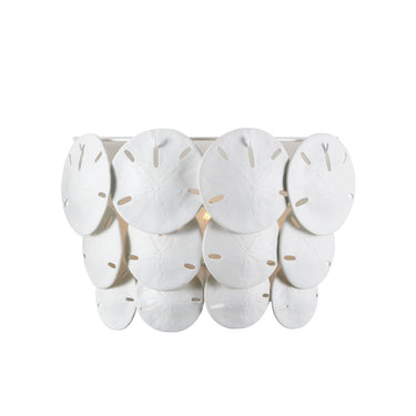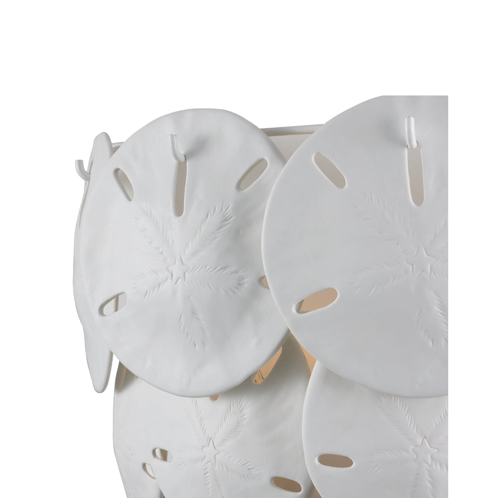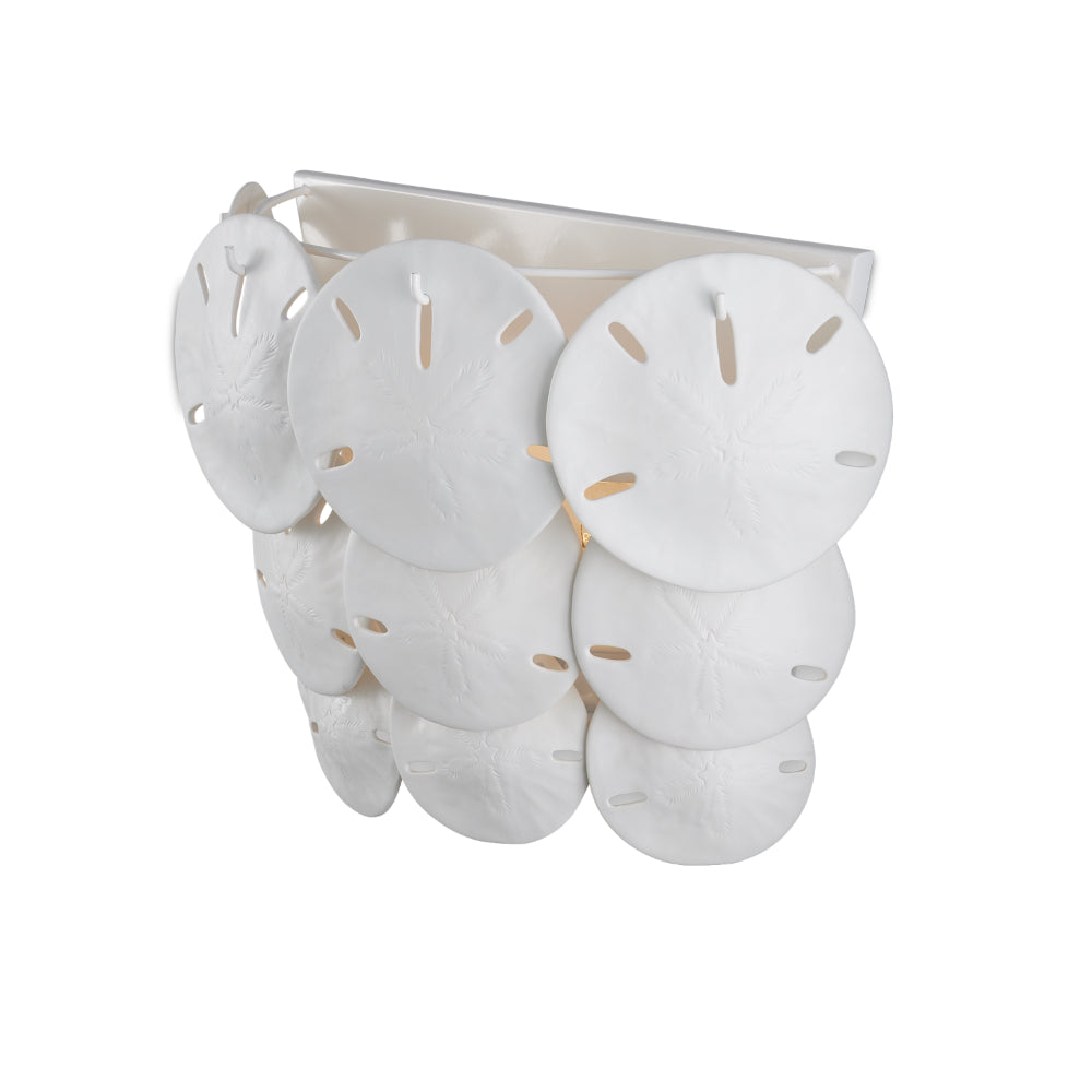 Marjorie Skouras designed the Tulum White Wall Sconce, inspired by the tropical beauty of the Yucatan Peninsula where she lives. This is a beautifully delicate design, as the sand dollars are cast in semi-translucent bone china and they make a pretty sound when a strong breeze ruffles them. There are three sizes of removable sand dollars on this design, which makes it easy to clean them. The sugar white finish on the hardware complements the pale discs on this nature-inspired wall sconce, making it apropos for rooms overlooking the ocean.