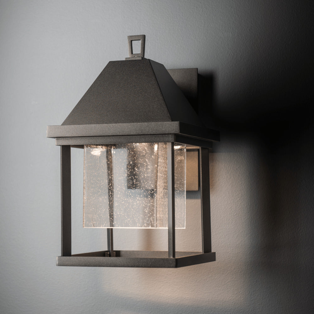 Classic lantern details define the Dorset Outdoor Collection" according to designer Paul Marr Hilliard. With its square face and pyramidal "roof", this smaller Dark Sky Friendly wall mounted sconce blends traditional and contemporary styles, and offers a wonderful option to light the exterior. Available in a choice of AAMA 2604-rated Coastal Outdoor Finishes.