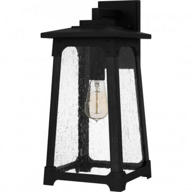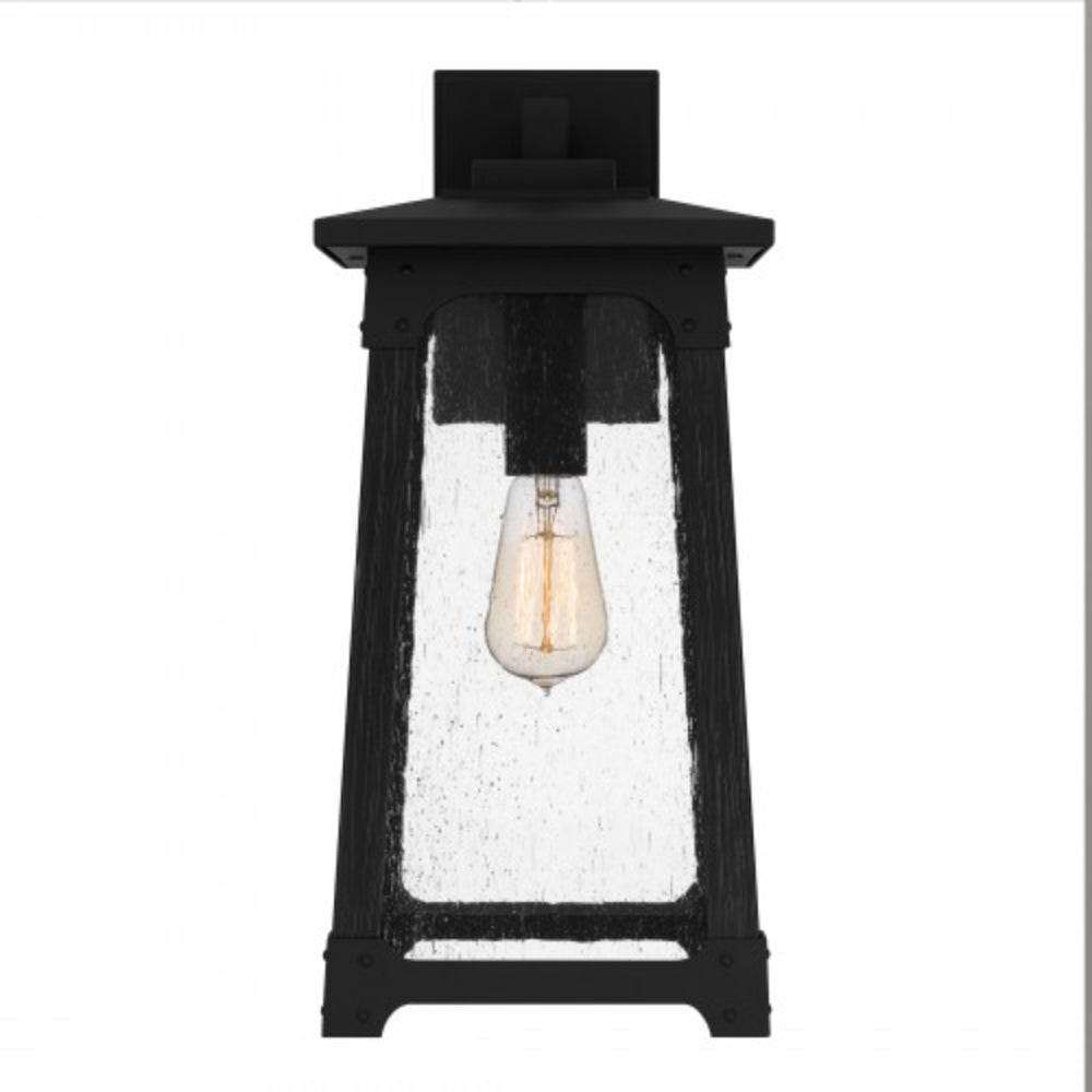 Update your home's exterior with Drescher wall lanterns. These handsome outdoor wall lights feature a matte black finish that is embellished with black wood accents for a touch of modern farmhouse style. Clear seedy glass completes the look, adding visual intrigue and soft illumination. Flank your front door with a pair of Drescher sconces - or use as a porch light to create the perfect setting for outdoor entertainment.