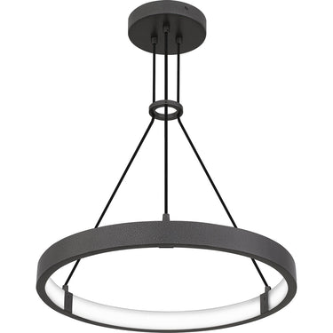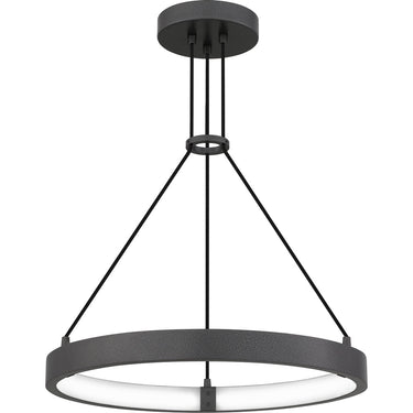 Create a sleek and contemporary look with the Drury pendant light. The simple pewter cast iron frame comes alive through an integrated LED light source, emitting a soft halo-like glow. Part of the popular Platinum by Quoizel series, Drury makes the perfect modern statement over any kitchen island or small table.