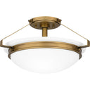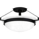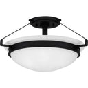 The Elderwood semi-flush mount adds traditional style to a wide range of spaces, from foyers to primary bathrooms. The matte black colorway includes an etched seeded glass shade. Or, opt for an opal etched shade with a handsome, weathered brass finish.