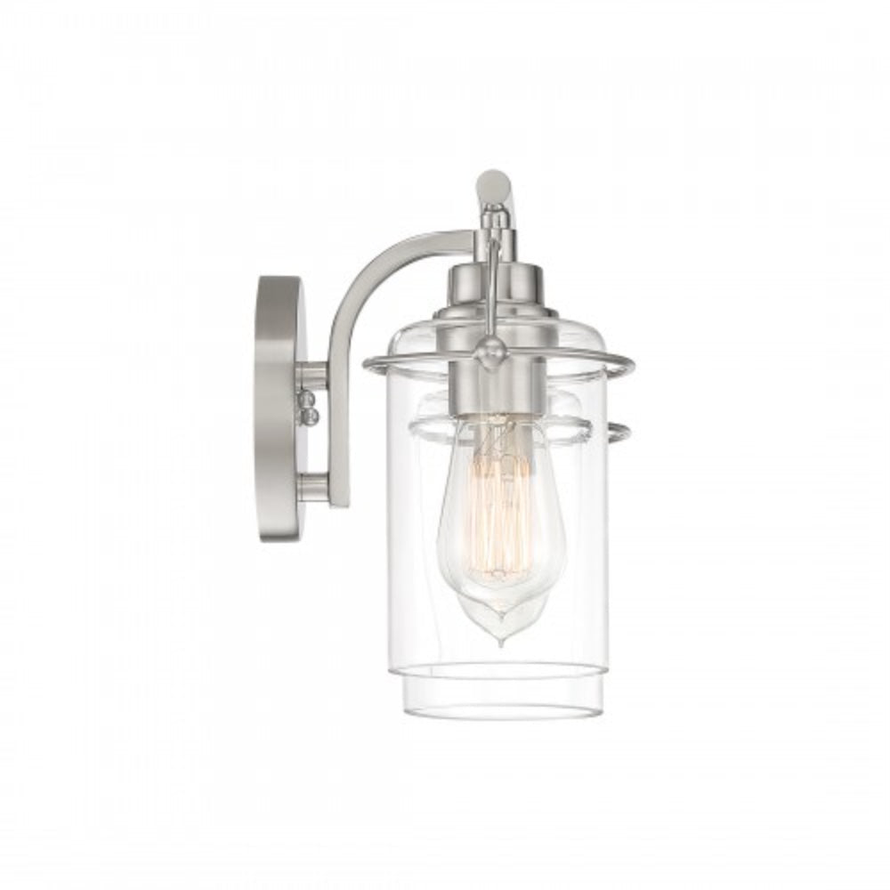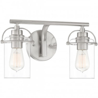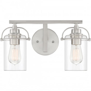 The Emerson's transitional silhouette charms with unique harness-style brackets and simple clear glass shades. Finished in a classic brushed nickel, this collection is sure to complement any decor.