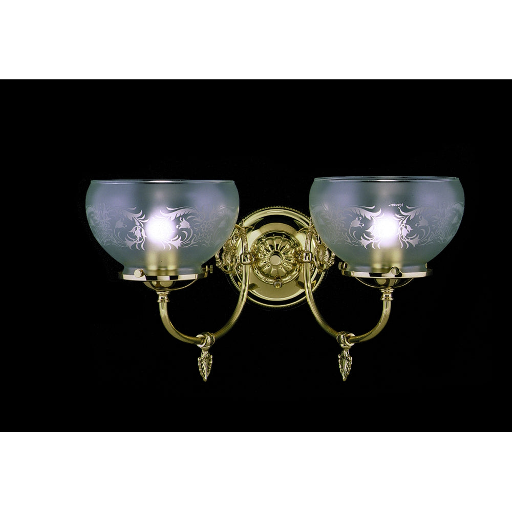 These pieces are authentic reproductions of late 19th century Victorian gas lights (notice the gas cocks on the arms). Due to the mass production techniques that the industrial revolution created ornamentation in many and varied forms is evident on Victorian styles. These pieces are no exception with reeded components, cast gas locks, and finely detailed clover scrolls. The glass is acid-etched with a flower pattern over a grave` finish. The polished brass is buffed with a jeweler;s rouge to add luster and depth; while the Bronzed Gold Leaf is leafed and oxidized to add bronze accents and texture.