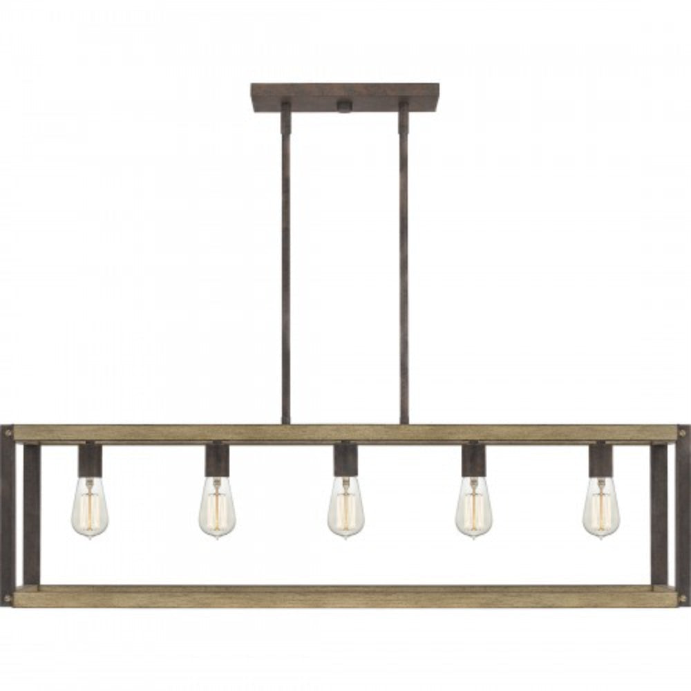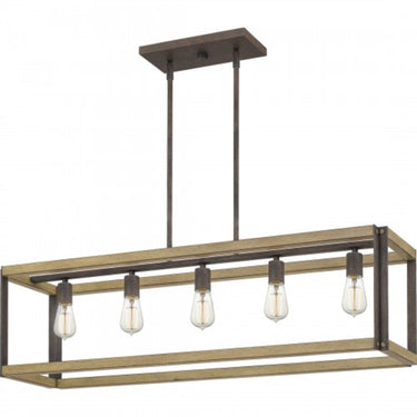 The open, airy design of the Finn collection easily complements many home decor styles. The rectangular silhouette is finished in Rustic Black and paired with a painted Natural Walnut finish to create a handsome farmhouse style fixture. The exposed bulbs allow for maximum light flow to illuminate any room.