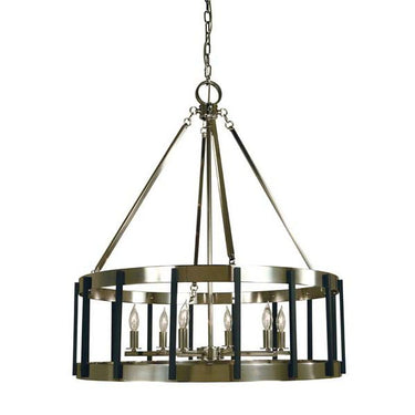 Drum cages encasing minimal chandeliers accented with mixed metal finishes. All Framburg lighting fixtures are hand made in the U.S.A.
