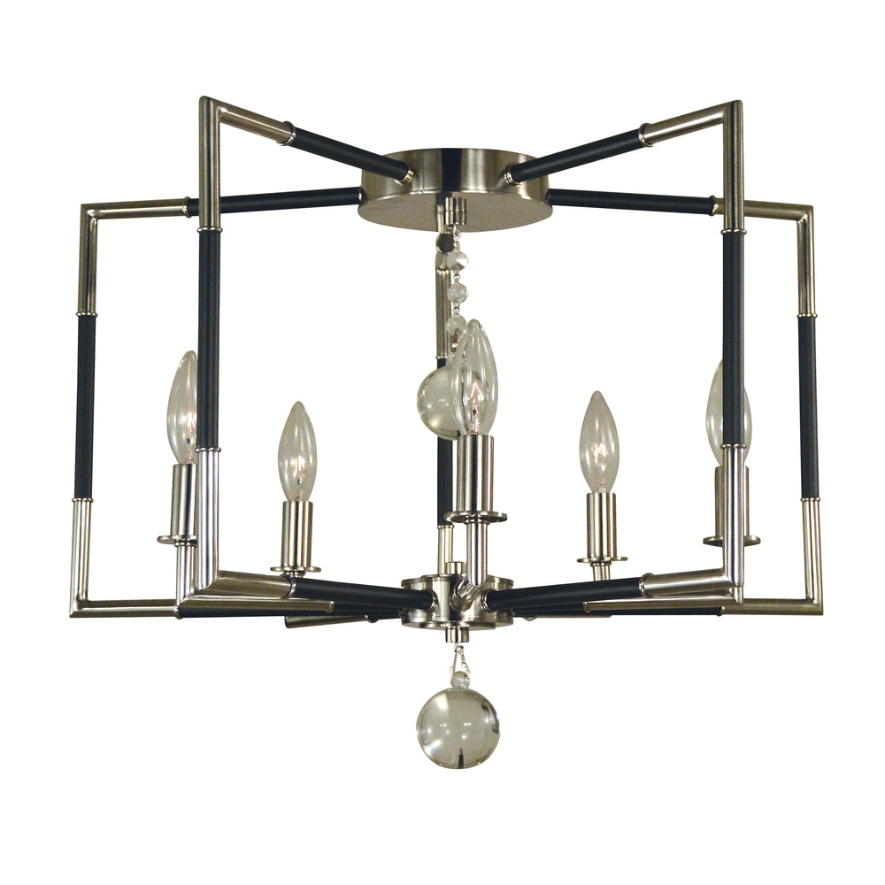 Framburg 5040 PN/MBLACK Felicity 5-Light Semi Flush Mount in Polished Nickel with Matte Black Accents
