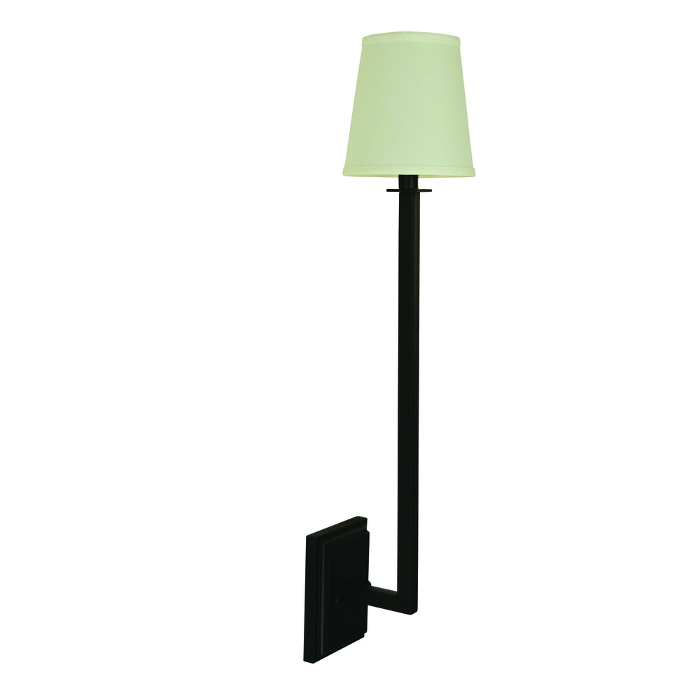Cast backplate and off white shade with a square arm
