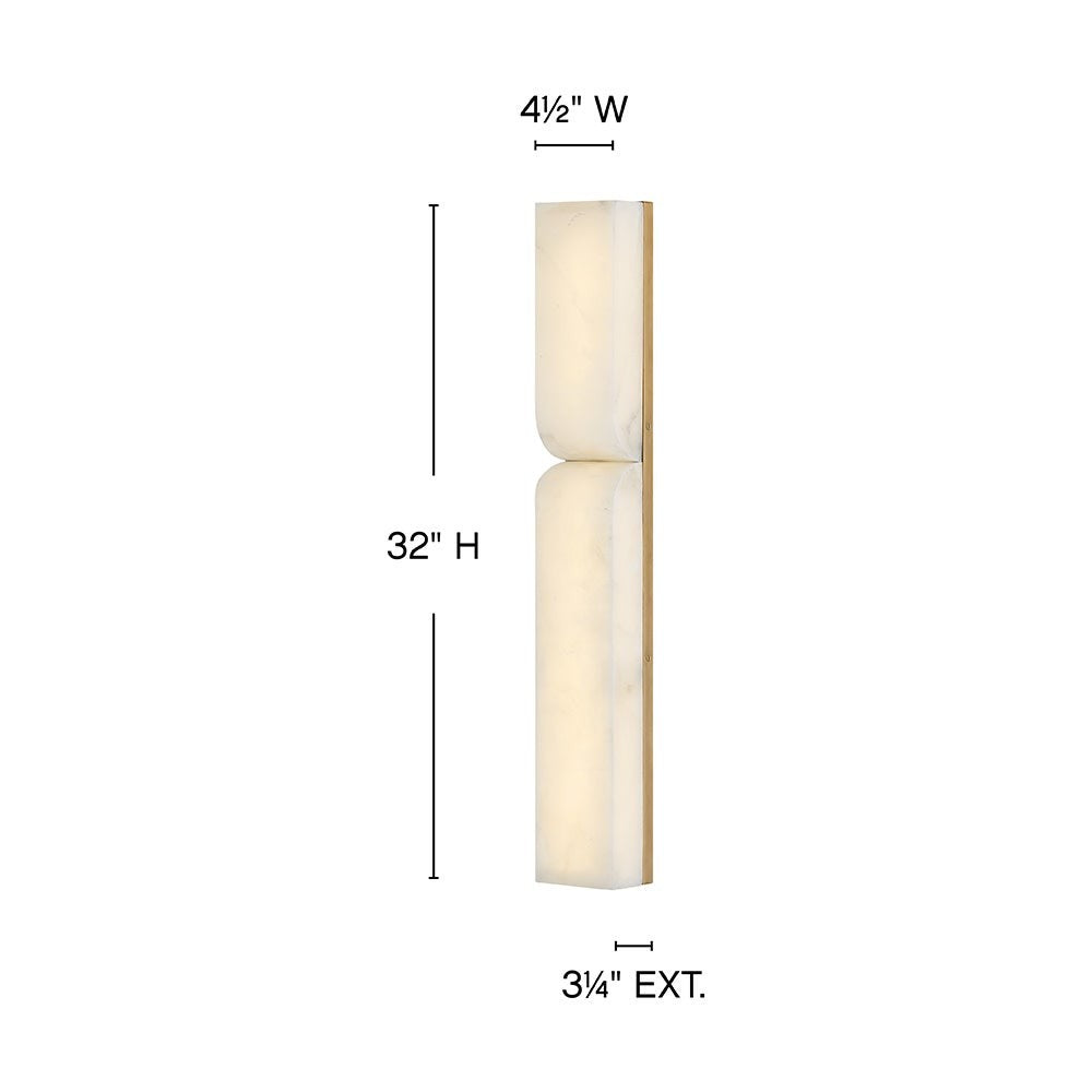 Defined by modern, asymmetrical curves, Alune accentuates smooth, natural alabaster with warm, integrated LEDs. Every unique variation in the stone’s color and pattern is brought into focus, complemented by a luxe Lacquered Brass finish.