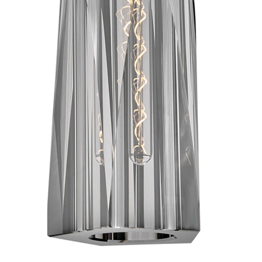 Dramatic and sleek, Cosette exudes opulent charm with an elongated silhouette and luxurious cut crystal. Two luxurious shade options, smokey gray or clear, beautifully cast a rich, multi-faceted light pattern. An elegantly concealed on/off switch makes Cosette sconces perfect for bedsides and intimate spaces.