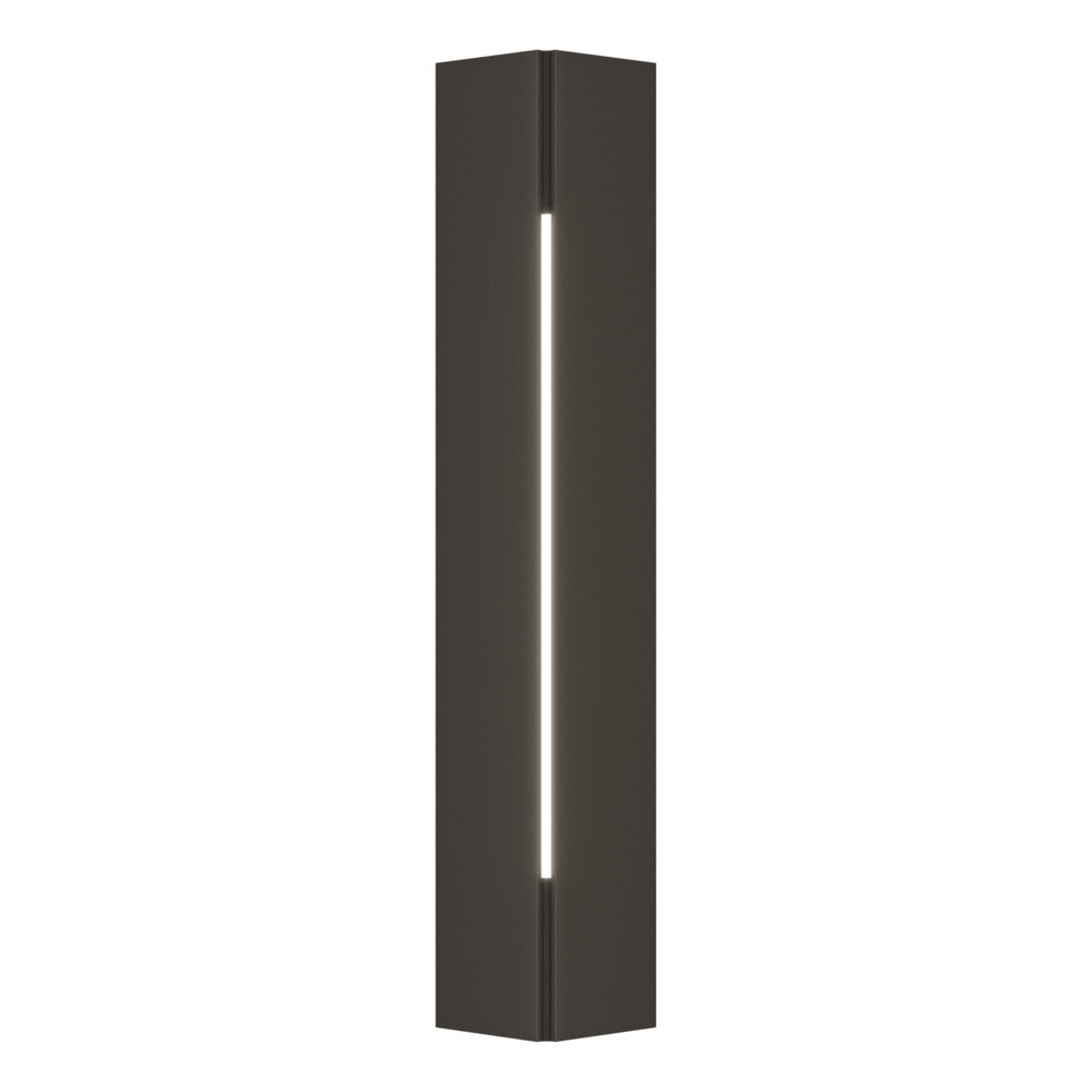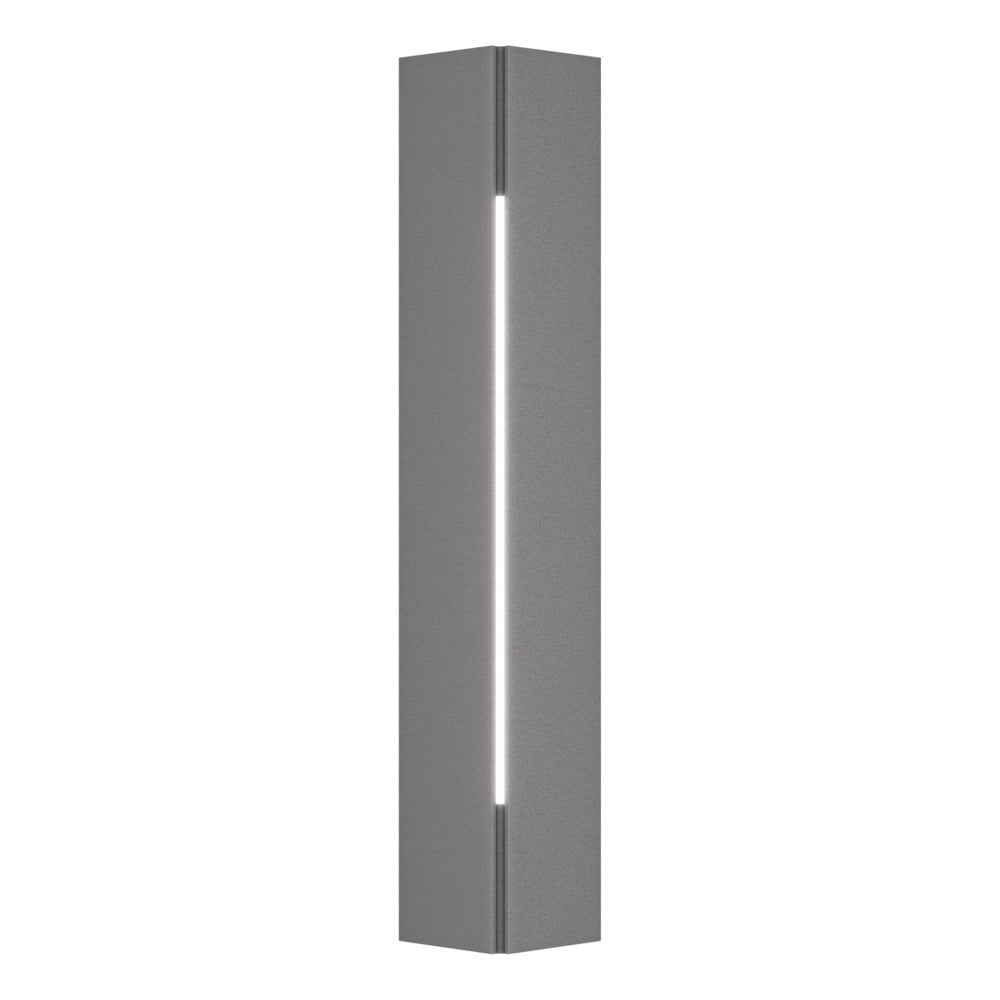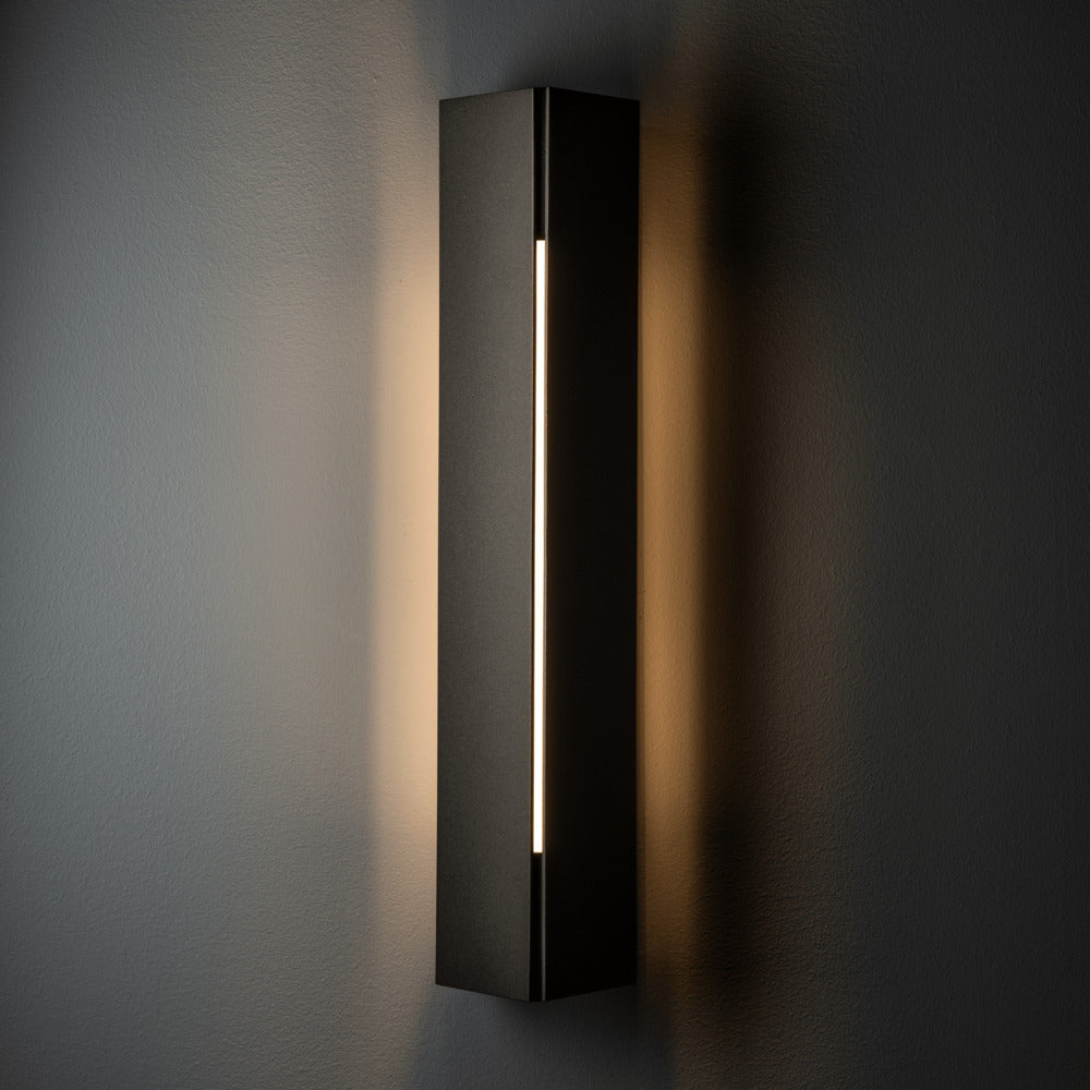 A contemporary exterior wall mount in a more petite version, the Gallery Small Outdoor Sconce's original design was conceived by HF co-founder George Chandler. It features clean lines and a geometric, prismatic shape for an architectural look. Its striking vertical stripe of light creates an elegant first impression.