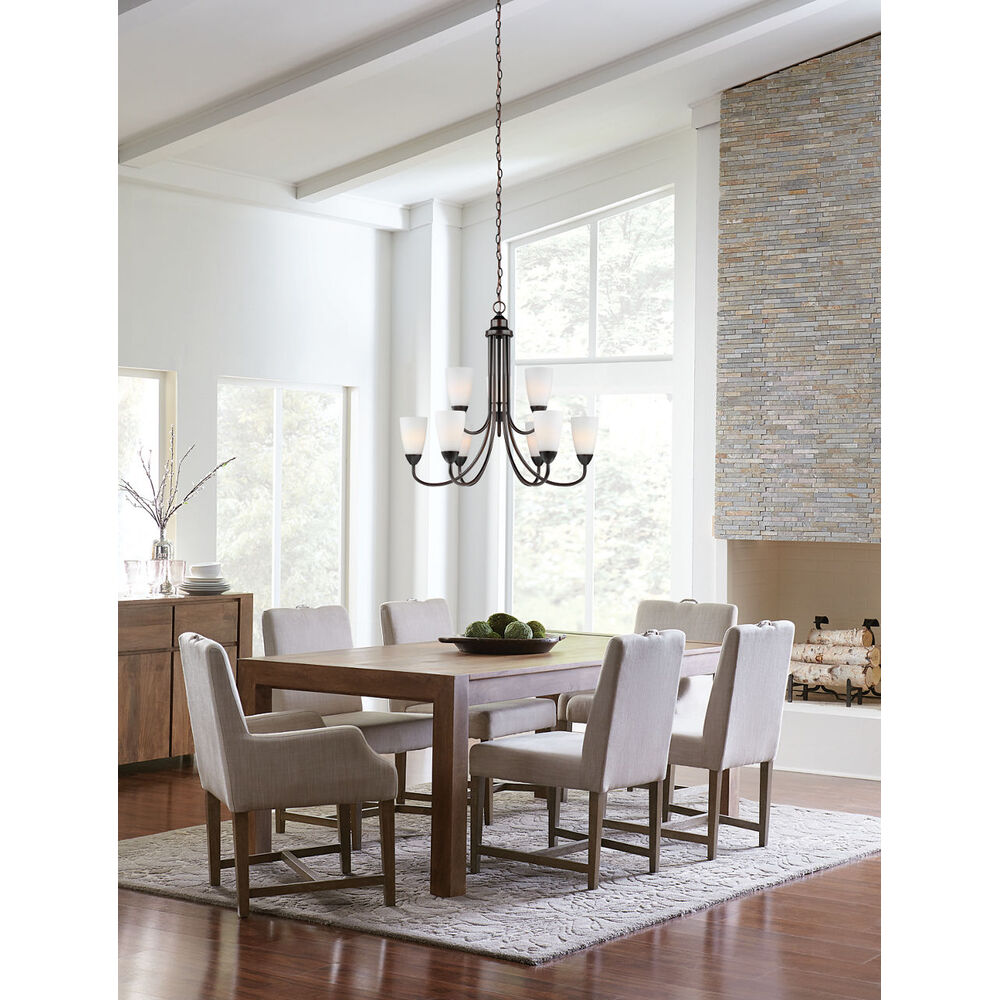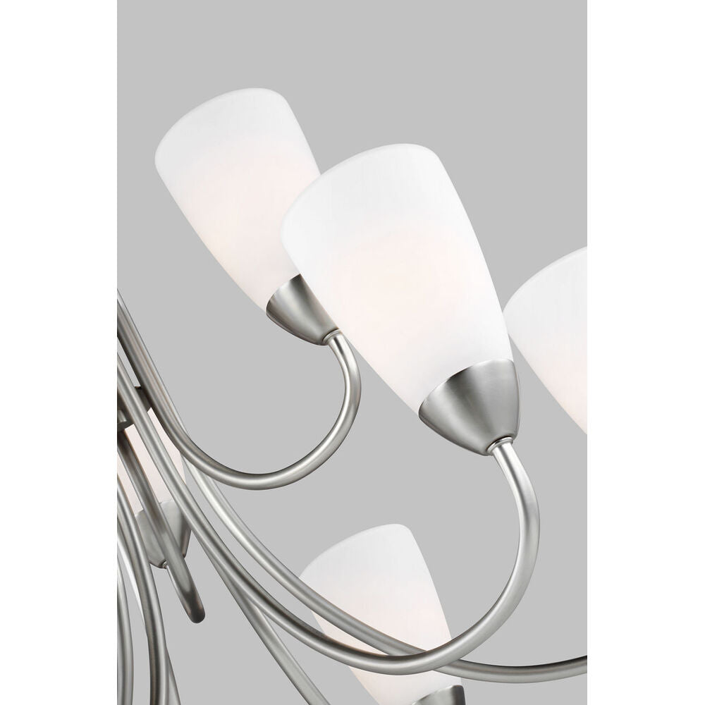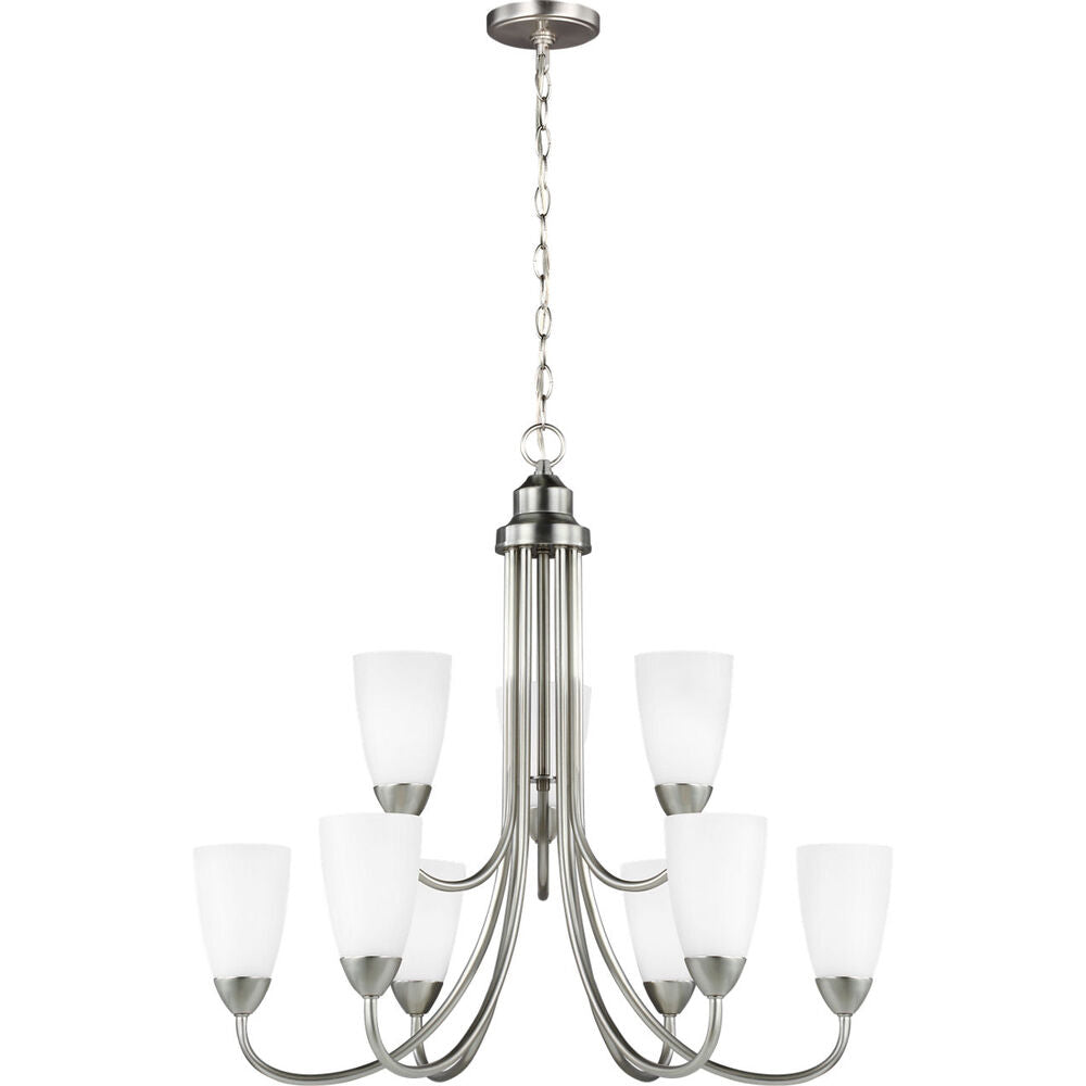 The Seville nine light multi tier chandelier in bronze supplies ample lighting for your daily needs, while adding a layer of today's style to your home's decor. The Seville collection represents commitment to high style at a sharp price. The modernist design is epitomized by the teardrop curves in the arms tipped by Etched glass diffusors throughout the chandeliers and bath fixtures. The collection offers a "whole home" lighting solution in every imaginable category. The assortment includes nine-light, five-light, and three-light chandeliers (either with up-light or down-light), pendants in four sizes as well as one-light, two-light, three-light , four-light and five-light wall/bath fixtures. Install a stylish and elegant addition to any room in the house. Seville is offered in Brushed Nickel and Burnt Sienna finishes.