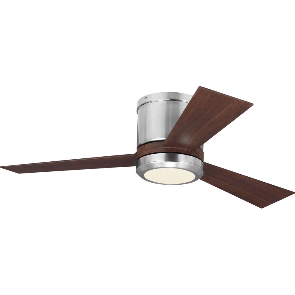 The Sean Lavin Clarity 42 LED in Brushed Steelfeatures a 153.0 X 12.0 3 speed motor with a Twelve degree blade pitch. The Clarity 42 ceiling fan has a sleek, three-blade design that hugs the ceiling and is offered in four finish combinations to suite virtually any decor. The fans blade sweep is 42". A two-in-one remote control (combo hand-held and wall mount) is included.