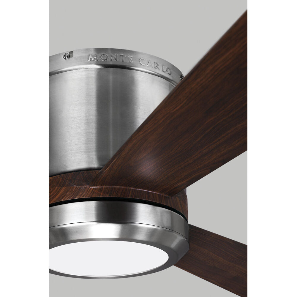 The Sean Lavin Clarity 52 LED in Brushed Steel features a 153.0 X 18.0 3 speed motor with a Twelve degree blade pitch. The Clarity 52 ceiling fan has a sleek, three-blade design that hugs the ceiling and is offered in four finish combinations to suite virtually any decor. The fans blade sweep is 52". A two-in-one remote control (combo hand-held and wall mount) with reverse and dimmer functionality is included.