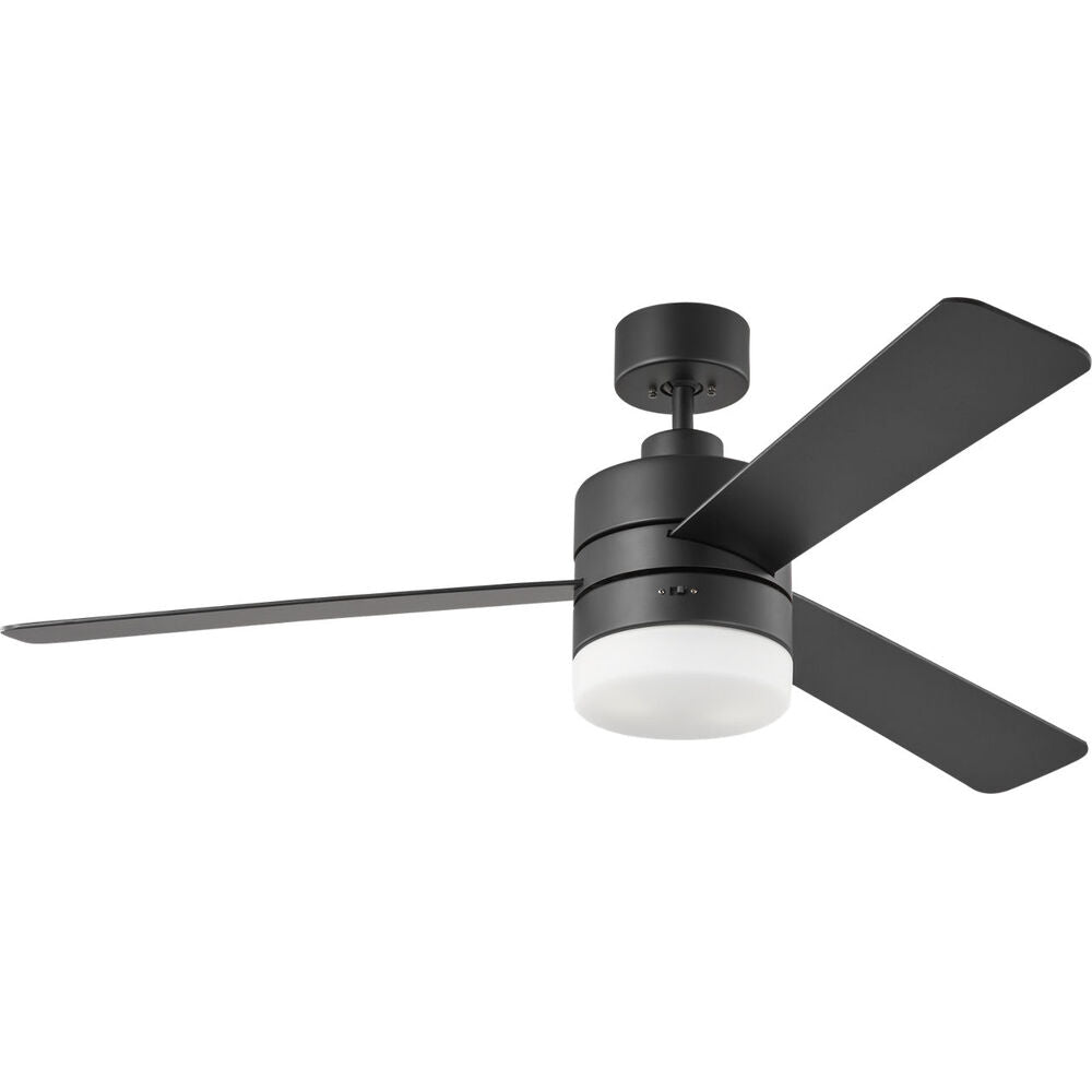 Modern, transitional, 3 blade fan with American Walnut and black reversible blades for damp locations