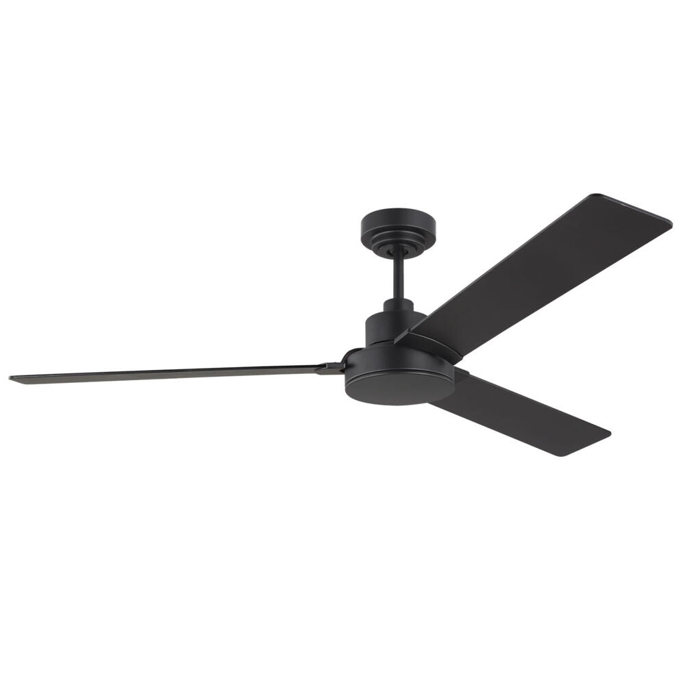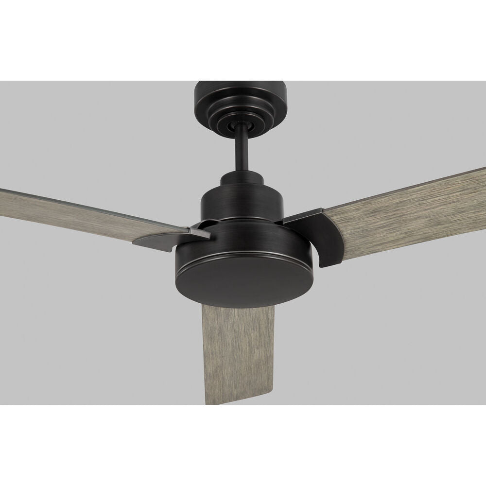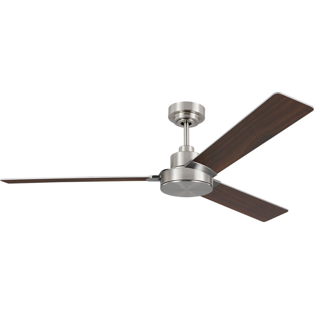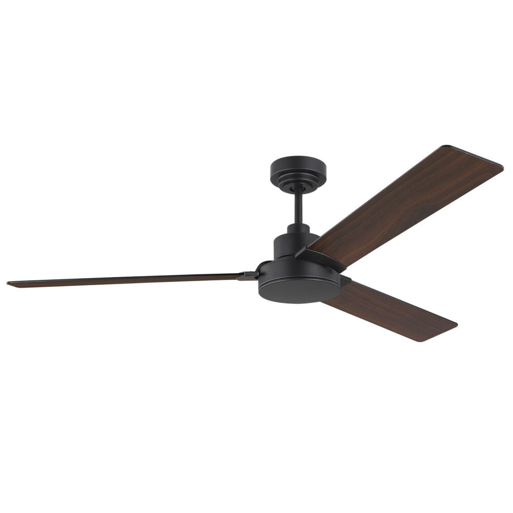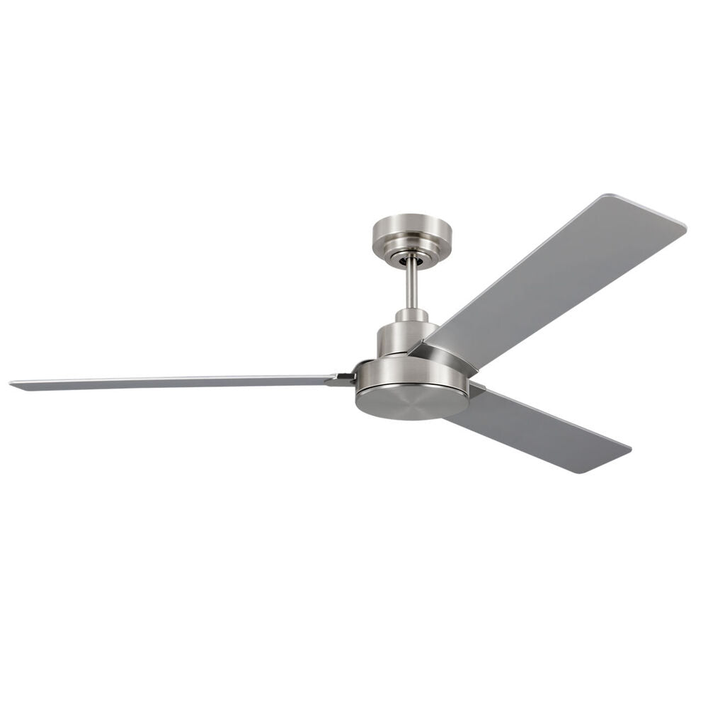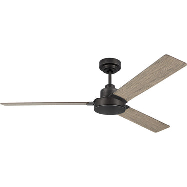 Transitional, industrial, 3 blade fan with light grey weathered ABS blades for wet locations