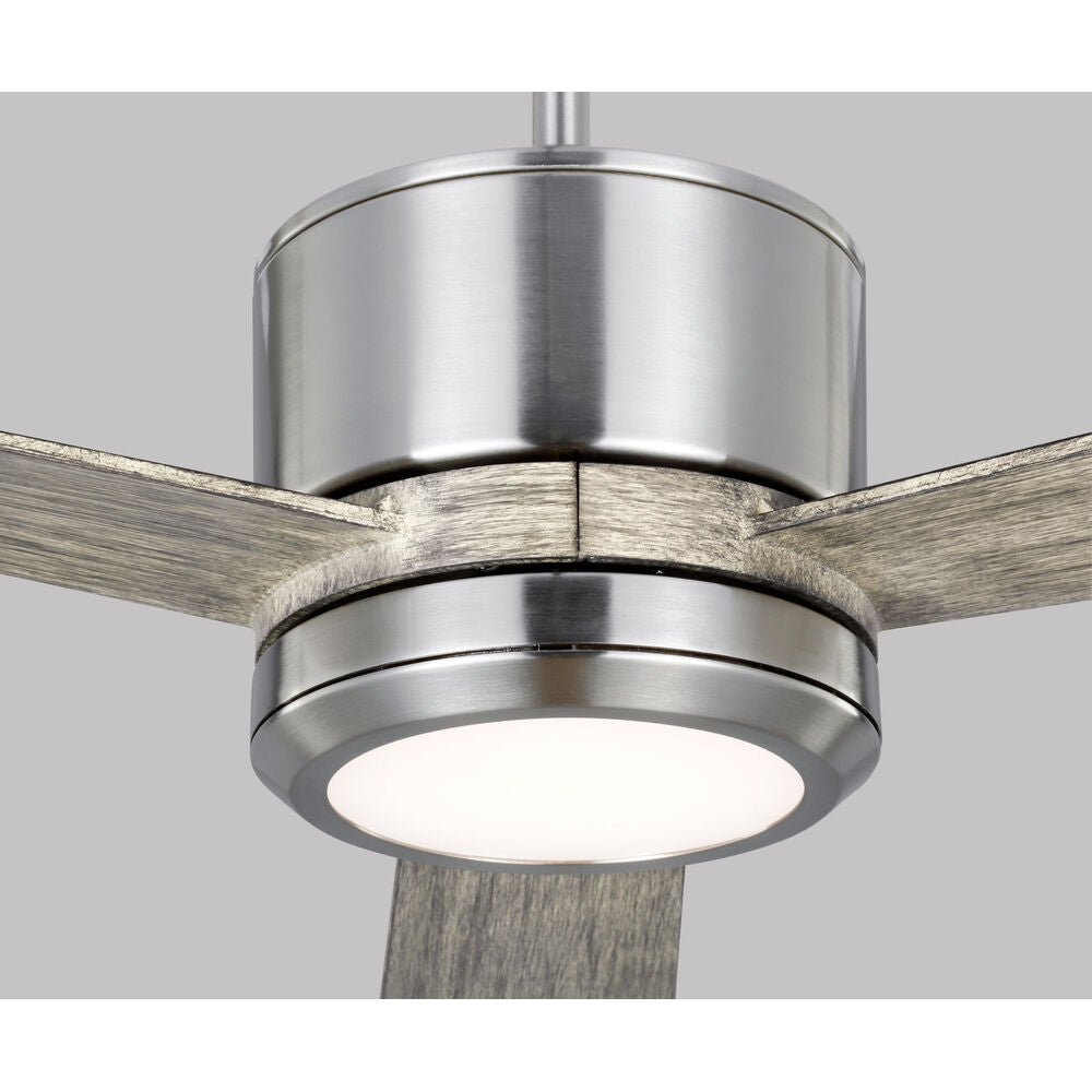 The Sean Lavin Vision 52 in Brushed Steel W/ LGWO features a 153.0 X 18.0 3 motor with a Twelve-degree blade pitch. The Vision 52 ceiling fans are sleek and modern and come in four unique finish combinations to create exactly the right look for its surrounding decor. A two-in-one remote (combo hand-held and wall mount) is included, which offers reverse, downlight, and dimming control.