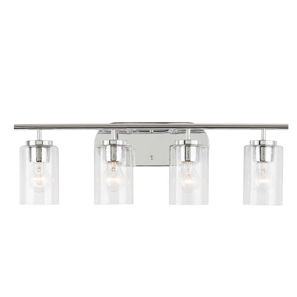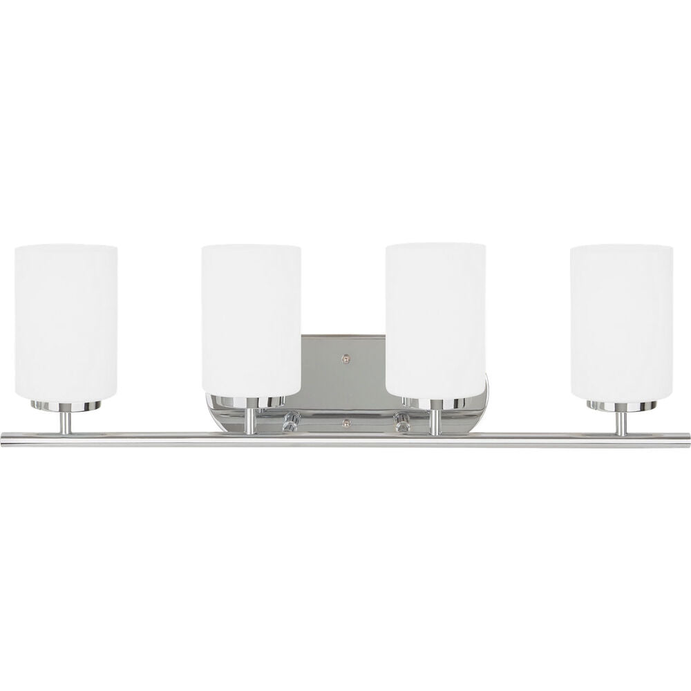 The Oslo four light vanity fixture in chrome provides abundant light for your bath vanity, while adding a layer of today's style to your interior design. The Oslo lighting collection by is a sleek design, with smooth and clean lines. The Opal Etched glass adds to this collection's contemporary and minimalist character. Offered in Chrome, Brushed Nickel, Burnt Sienna and textured Blacksmith finishes, the collection includes nine-, five-, and three-light chandeliers, pendants in four sizes, both flush and semi-flush ceiling fixtures, as well as one-, two-, three- and four-light wall/bath fixtures. Both incandescent lamping and ENERGY STAR-qualified LED lamping are available. All fixtures are California Title 24 compliant.