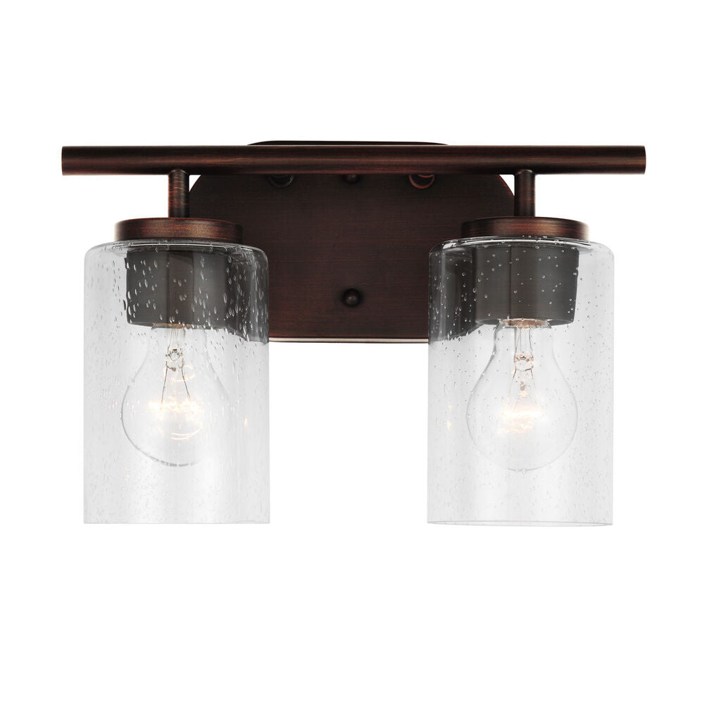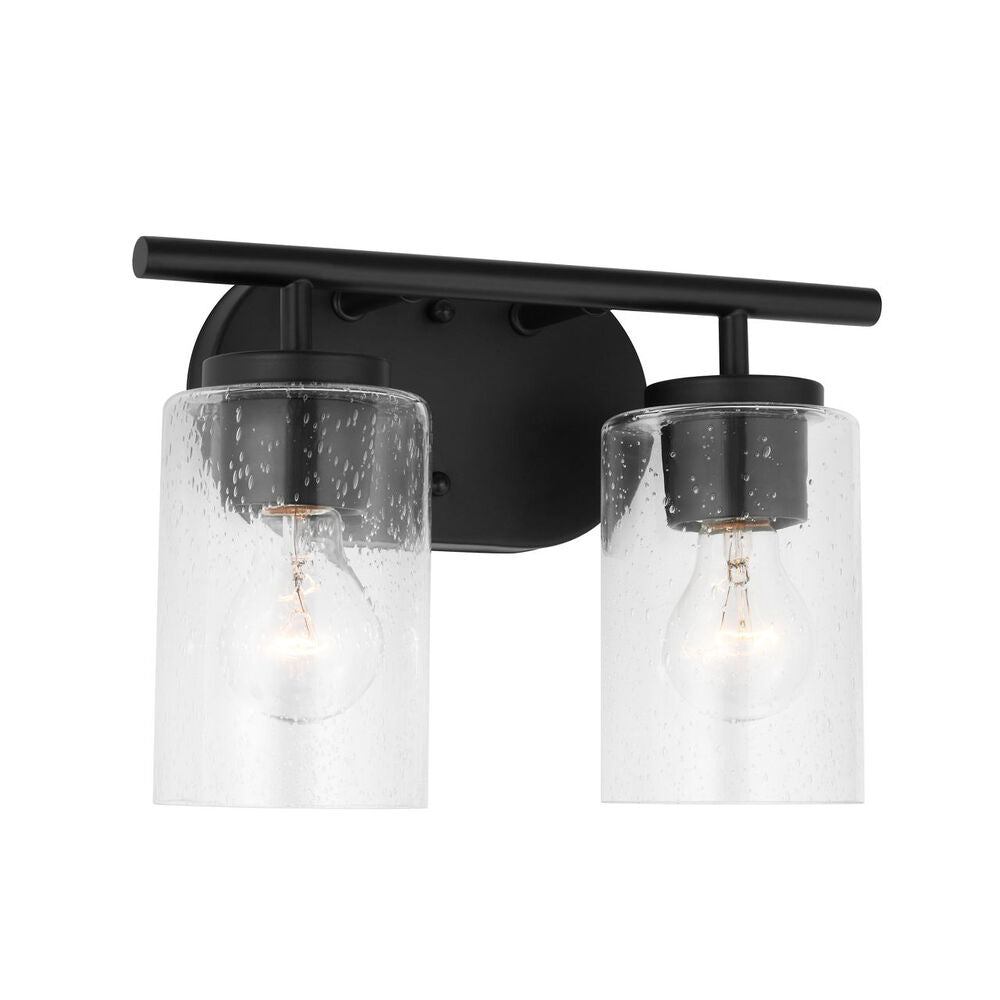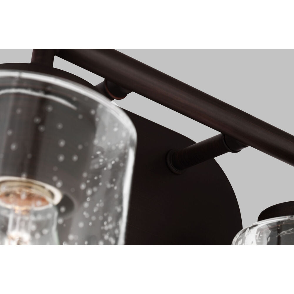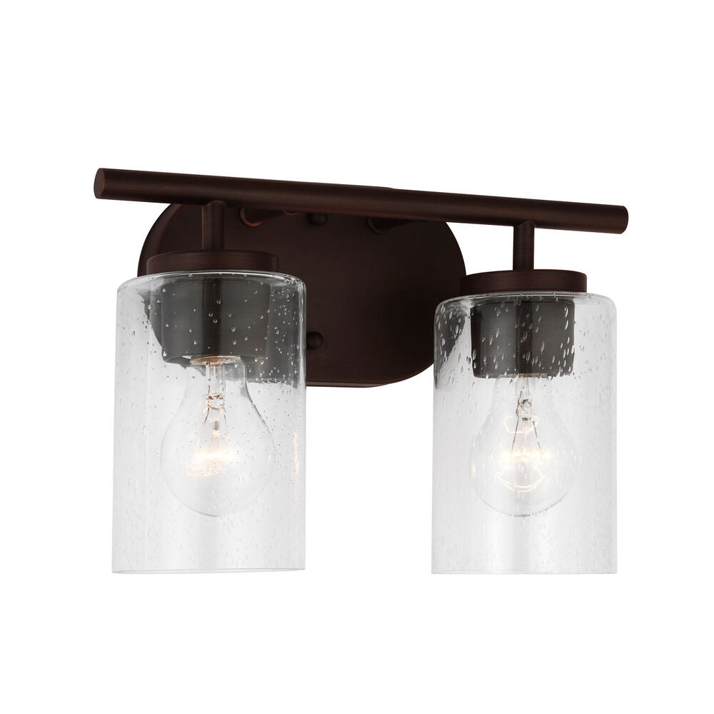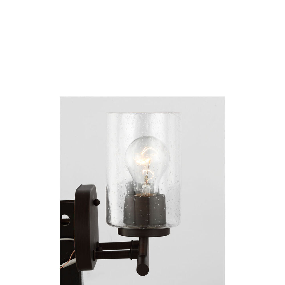 The Oslo two light vanity fixture offers shadow-free lighting in your powder room, spa, or master bath room. The Oslo lighting collection by is a sleek design, with smooth and clean lines. The Clear Seeded glass adds to this collection's contemporary and minimalist character. Offered, Brushed Nickel, Bronze and Midnight Black finishes, the collection includes nine-, five-, and three-light chandeliers, mini pendant, both flush and semi-flush ceiling fixtures, as well as one-, two-, three- and four-light wall/bath fixtures. Both incandescent lamping and ENERGY STAR-qualified LED lamping are available. All fixtures are California Title 24 compliant.
