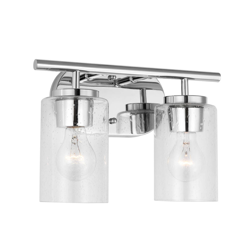Oslo dimmable 2-light wall bath sconce in a chrome finish with clear seeded glass shade