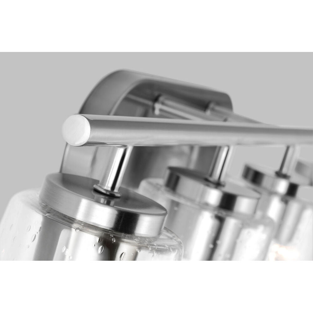 The Oslo four light vanity fixture in Chrome offers shadow-free lighting in your powder room, spa, or master bath room. The Oslo lighting collection by is a sleek design, with smooth and clean lines. The Clear Seeded glass adds to this collection's contemporary and minimalist character. Offered in Chrome, Brushed Nickel, Bronze and Midnight Black finishes, the collection includes nine-, five-, and three-light chandeliers, mini pendant, both flush and semi-flush ceiling fixtures, as well as one-, two-, three- and four-light wall/bath fixtures. Both incandescent lamping and ENERGY STAR-qualified LED lamping are available. All fixtures are California Title 24 compliant.