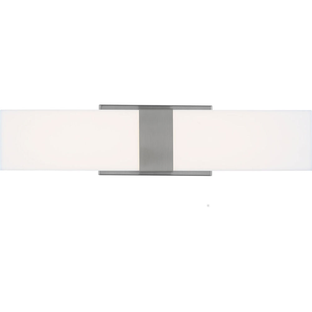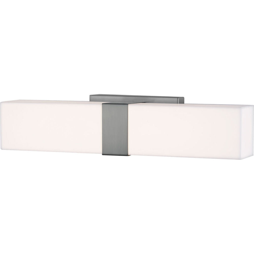 The Vandeventer one light vanity fixture in brushed nickel offers shadow-free lighting in your powder room, spa, or master bath room. Uber-sleek and modern, the Vandeventer bath collection by has clean lines and a contemporary rectilinear profile made of White Acrylic and Steel. Featuring fully dimmable, warm white LED light, the fixtures can be installed horizontally or vertically for ultimate design flexibility. The LEDs are long-lasting to minimize the need to change the light source over time. Offered in the Brushed Nickel finish, the bath lighting collection includes a 23a� linear vanity fixture (which consumes only 18 watts of power), a 36a� linear vanity fixture (which consumes only 29 watts of power), plus a wall sconce (which consumes only 8 watts power).