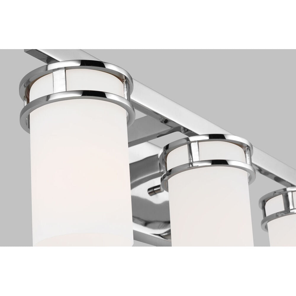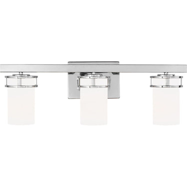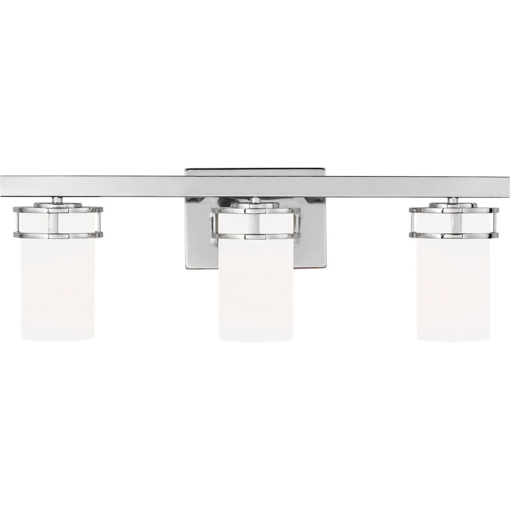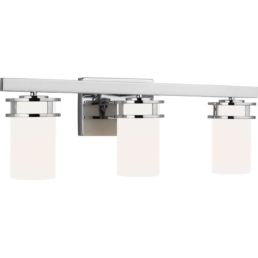 The Robie three light vanity fixture in chrome offers shadow-free lighting in your powder room, spa, or master bath room.