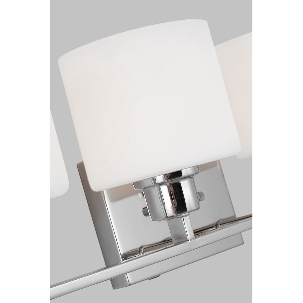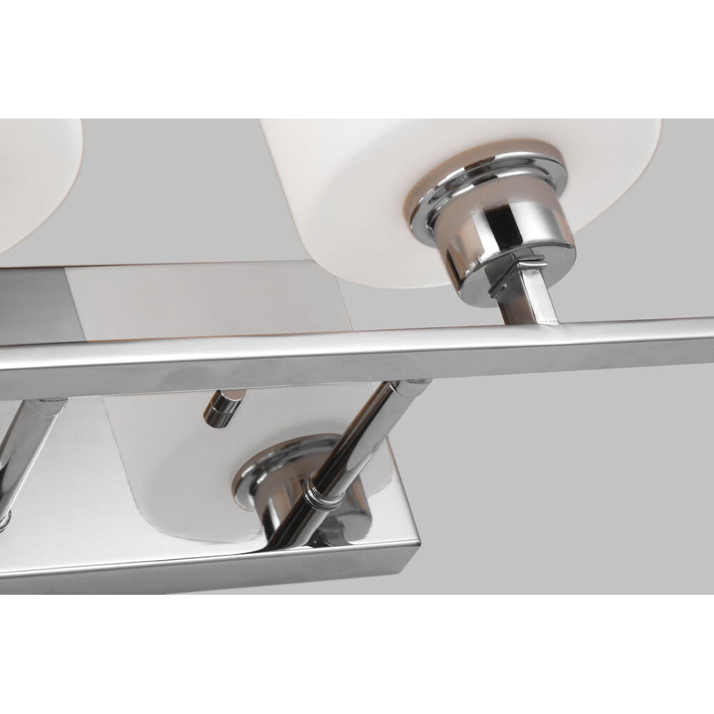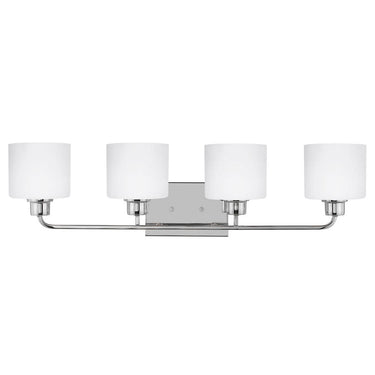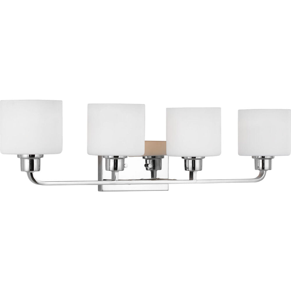 Canfield modern 4-light indoor dimmable bath vanity wall sconce in chrome silver finish with etched white inside glass shades