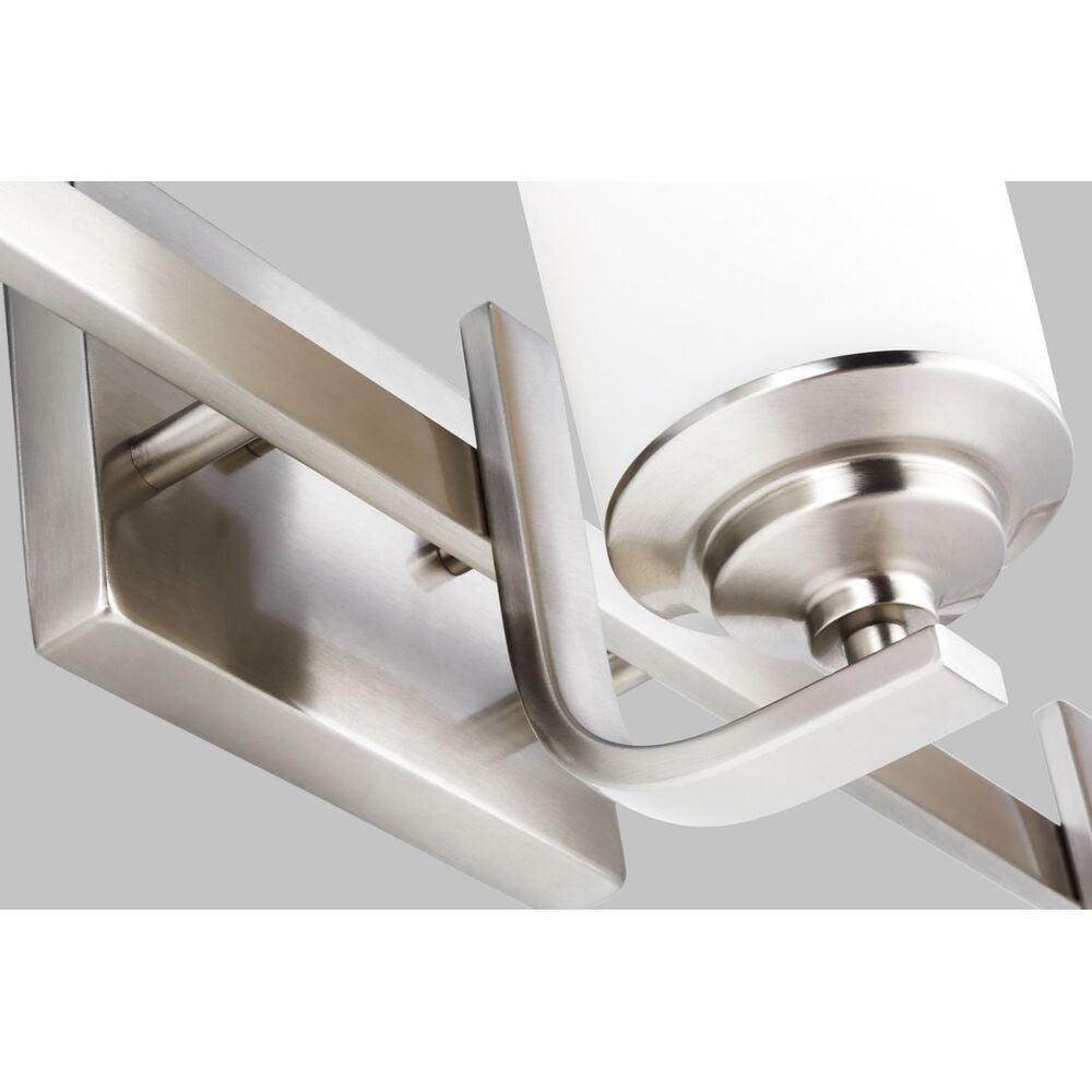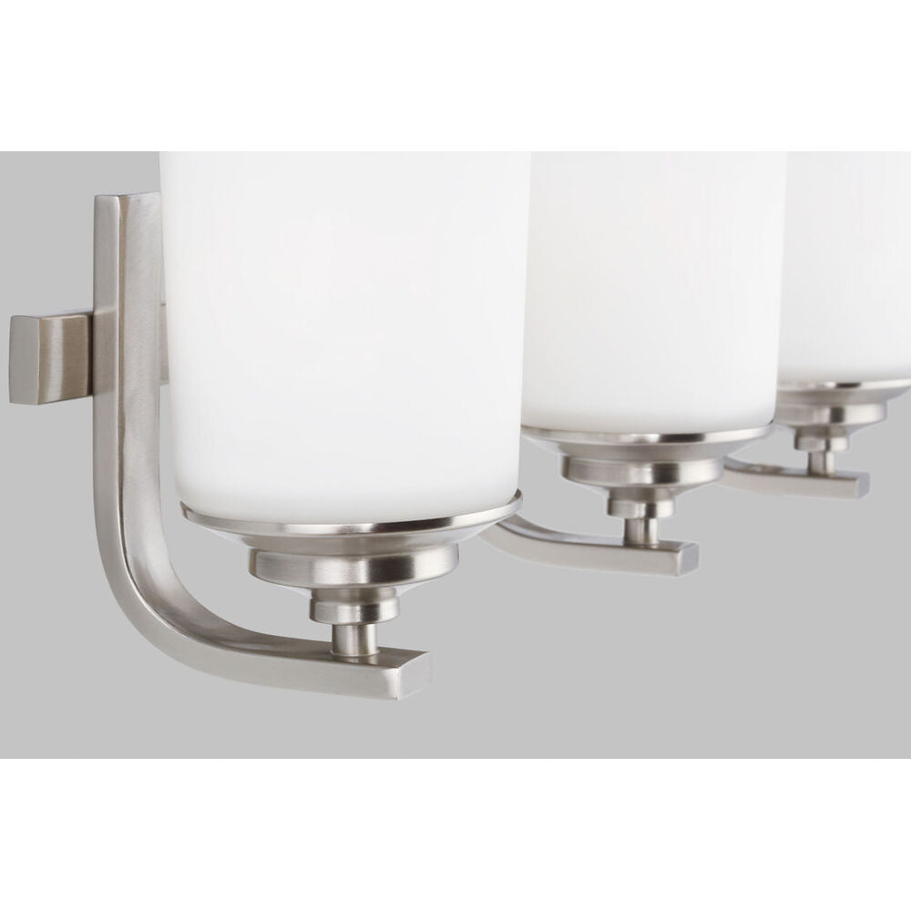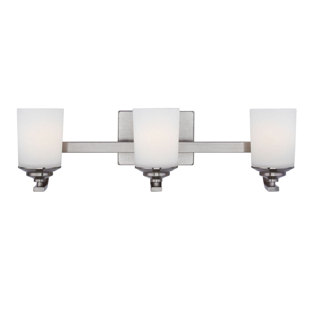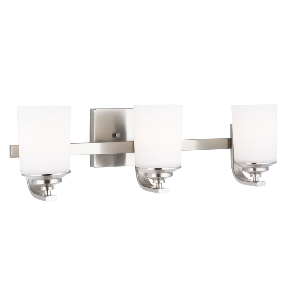 The Kemal three light vanity fixture offers shadow-free lighting in your powder room, spa, or master bath room.