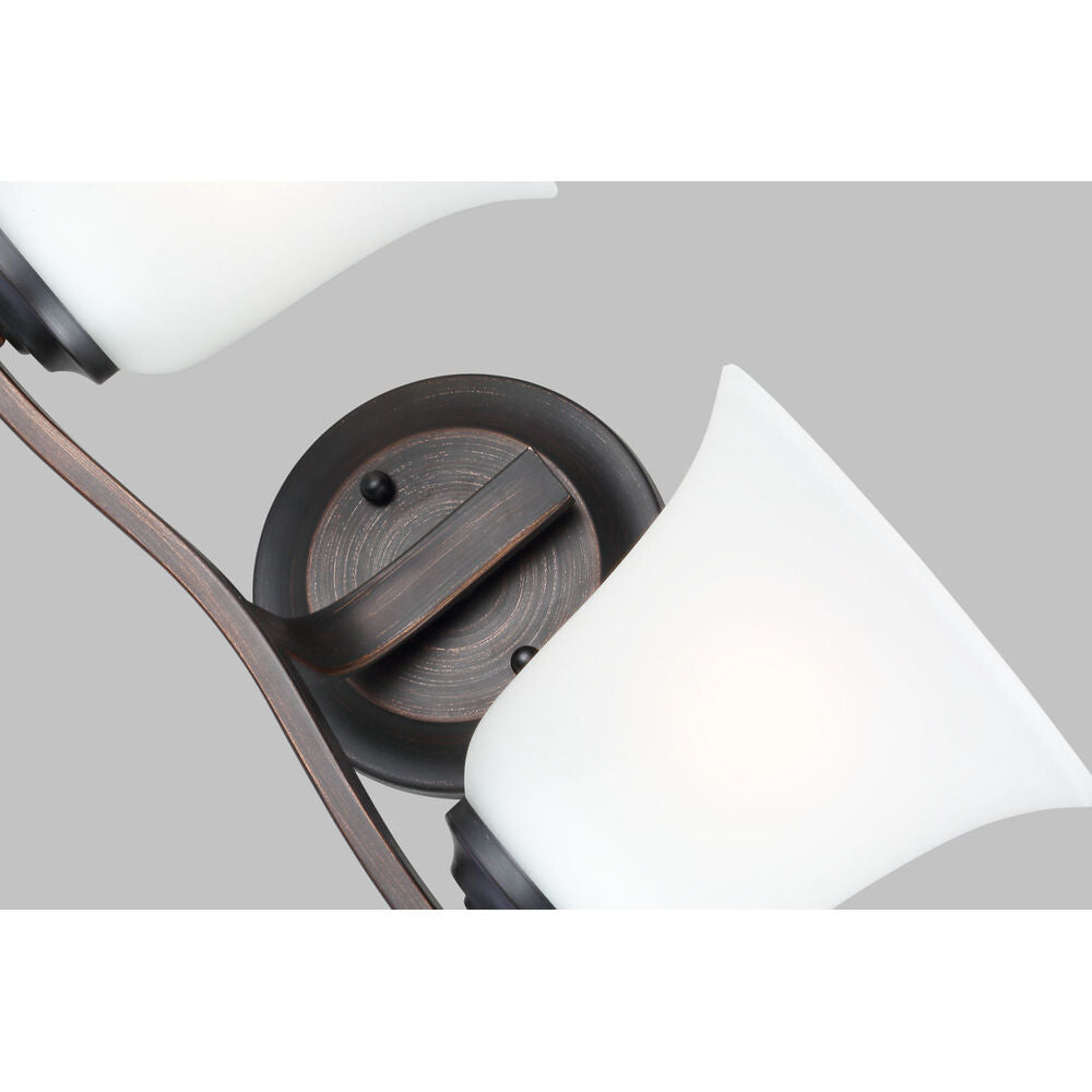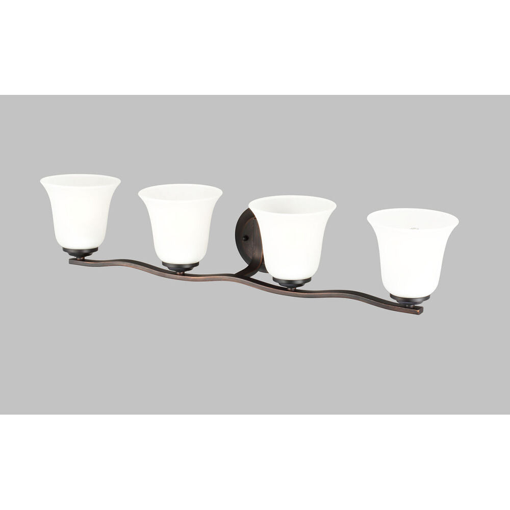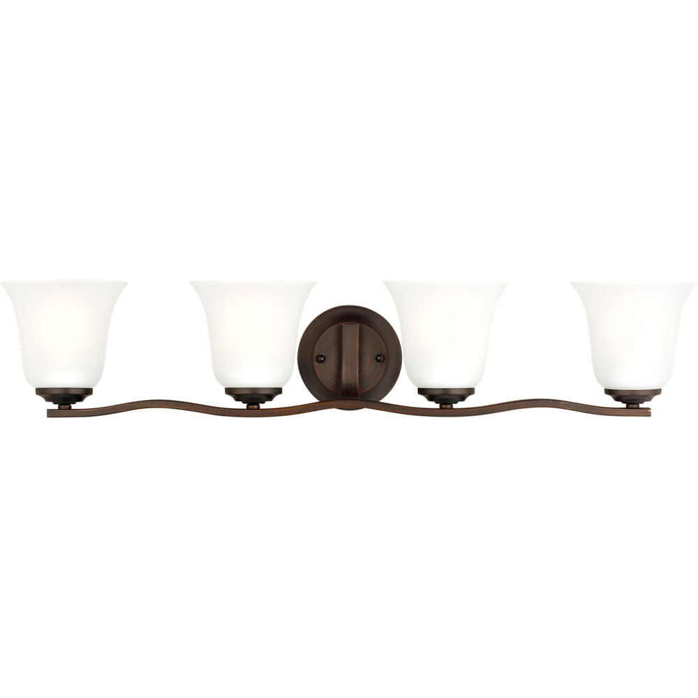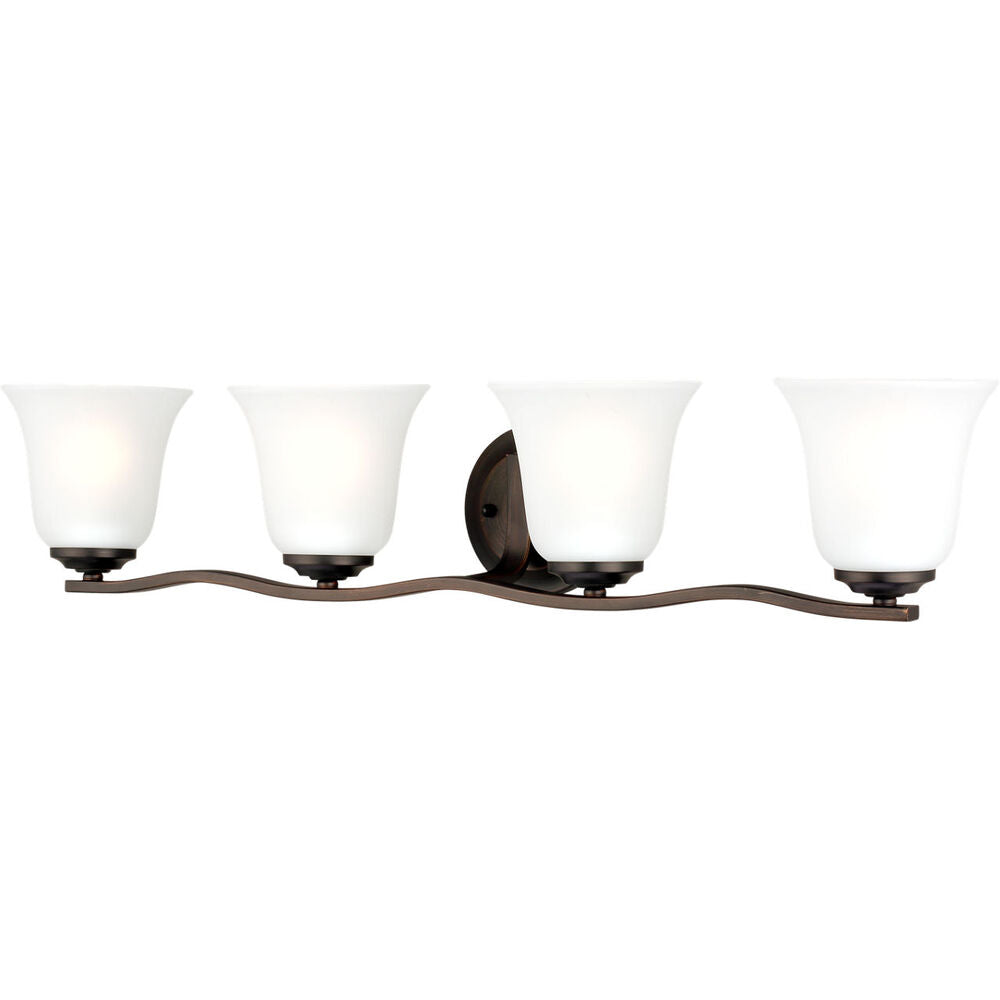 Emmons traditional 4-light indoor dimmable bath vanity wall sconce in bronze finish with satin etched glass shades