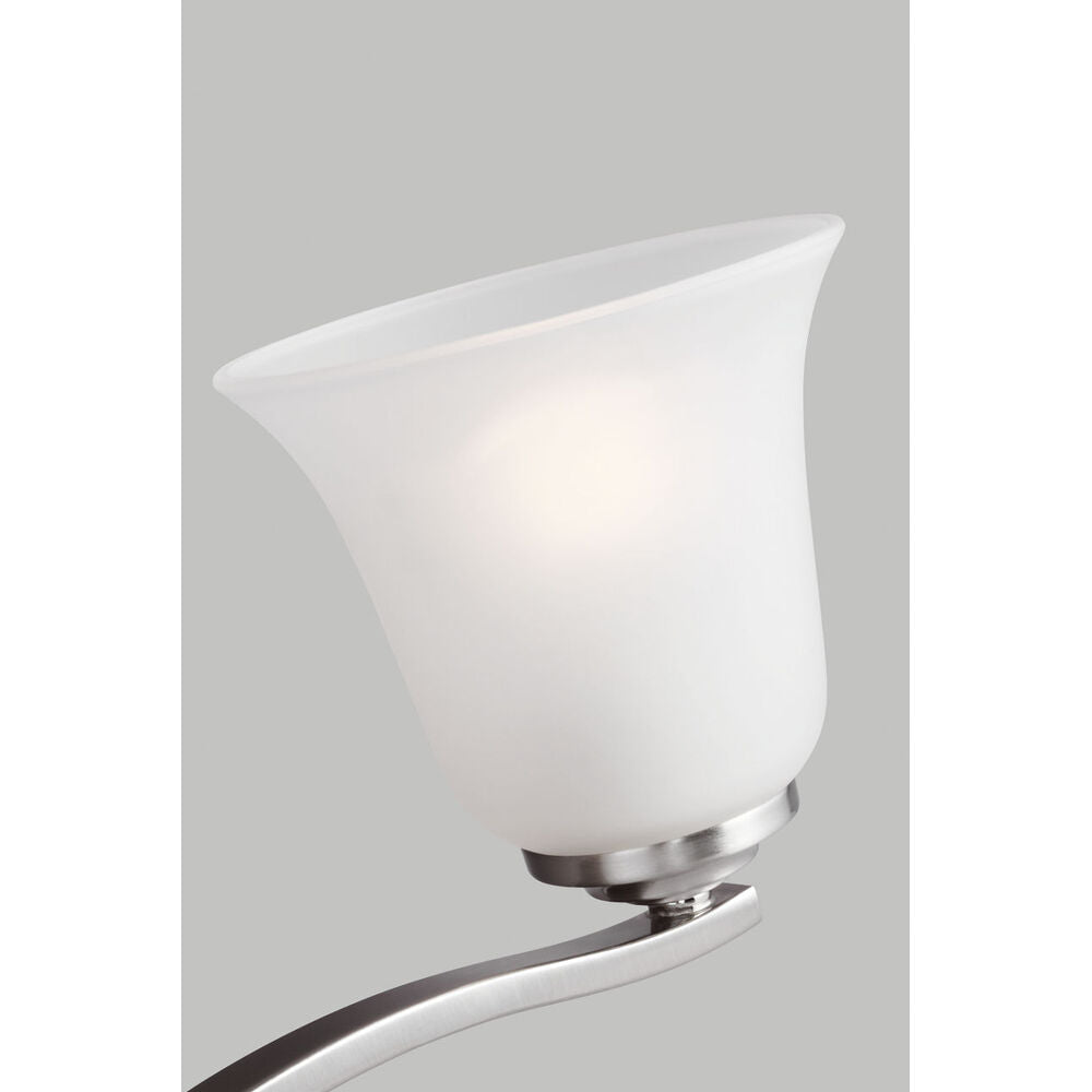 The Emmons lighting series combines form and function in a traditional empire silhouette. Trumpeted Satin Etched glass shades and a circular finial further enhance the design.
