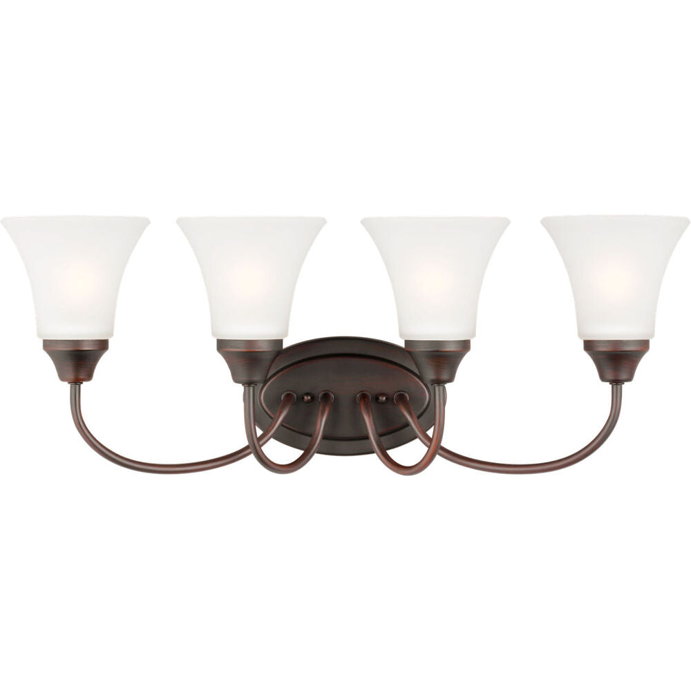 The Holman four light vanity fixture provides abundant light for your bath vanity, while adding a layer of today's style to your interior design. Holman features softly flared glass and curved arms, with just enough detail to give the overall look a lift while keeping it simple enough for those on a budget