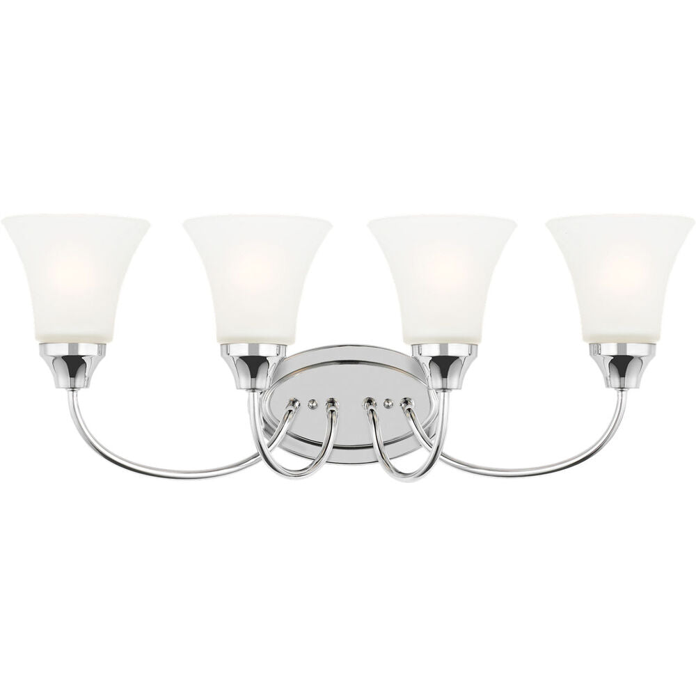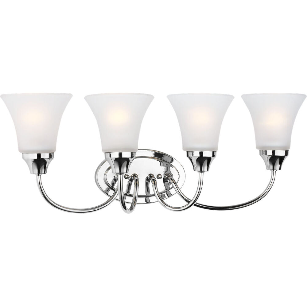 The Holman four light vanity fixture in chrome provides abundant light for your bath vanity, while adding a layer of today's style to your interior design. Holman features softly flared glass and curved arms, with just enough detail to give the overall look a lift while keeping it simple enough for those on a budget