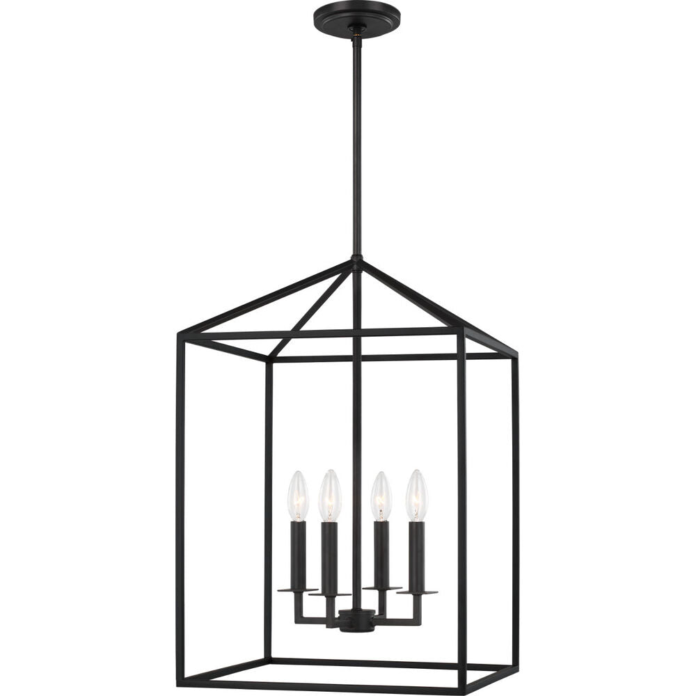 The Perryton four light indoor pendant enhances the beauty of your home with ample light and style to match today's trends. Inspired by stately carriage lanterns, Perryton features an updated open frame with sleek square steel tubing