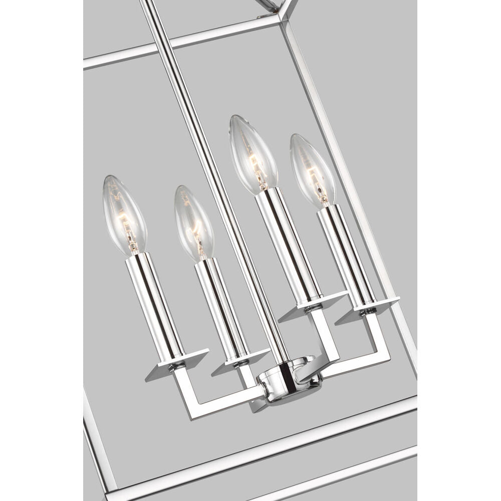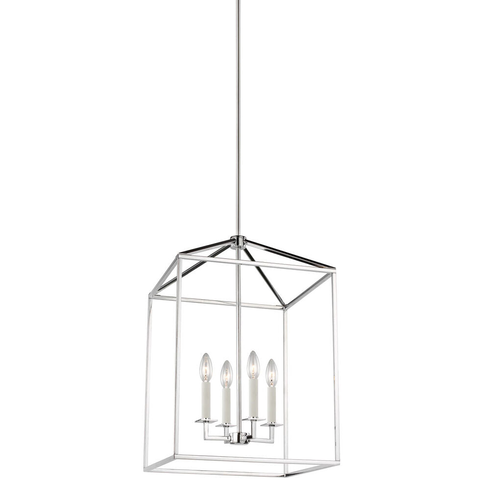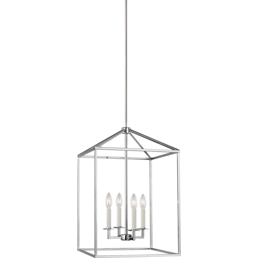 The Perryton four light indoor pendant in chrome enhances the beauty of your home with ample light and style to match today's trends. Inspired by stately carriage lanterns, Perryton features an updated open frame with sleek square steel tubing
