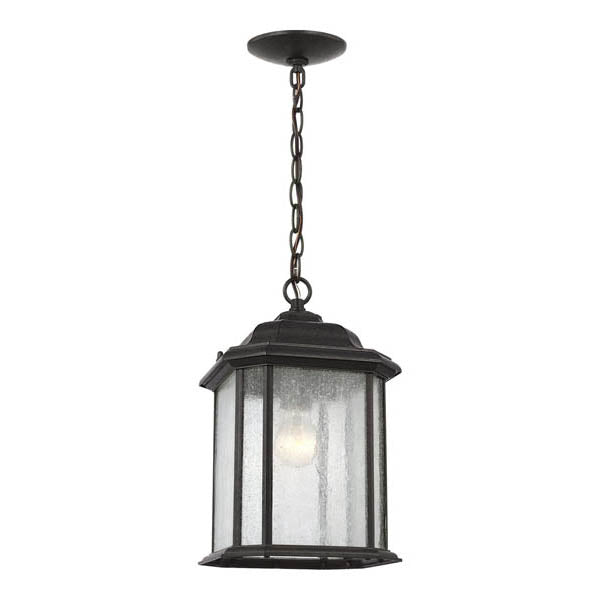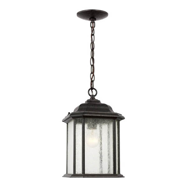 The Kent one light outdoor pendant fixture creates a warm and inviting welcome presentation for your home's exterior. Kent outdoor lighting fixtures by are crafted in die-cast aluminum for added durability to withstand harsh weather conditions. The traditional styling inspired by antique gas lanterns is offered in either Oxford Bronze with Clear Seeded glass, Black finish with Clear Beveled glass, and both finishes with Satin Etched glass. The assortment includes small and large one-light outdoor wall lanterns (with a flat bottom), as well as an additional design of small and large one-light outdoor wall lanterns (with finial on top and bottom) which can be mounted up or down, a one-light outdoor semi-flush convertible pendant and a one-light outdoor post lantern. Both incandescent lamping and ENERGY STAR-qualified LED lamping (for those fixtures with the Satin Etched glass) are available for most of the fixtures, and some can easily convert to LED by purchasing LED replacement lamps sold separately.