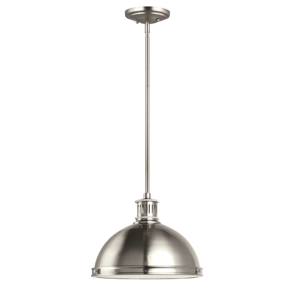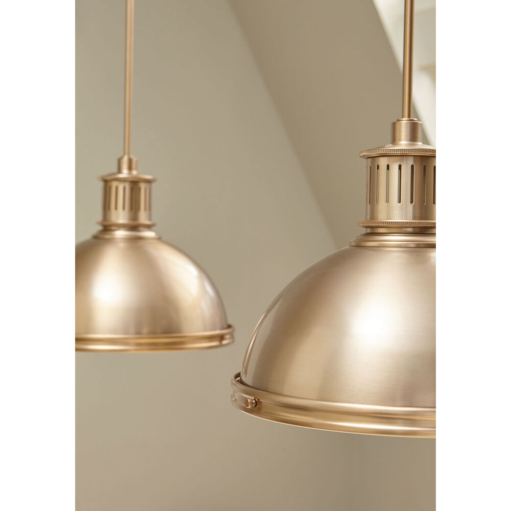 The Pratt Street Metal two light indoor pendant is the perfect way to achieve your desired fashion or functional needs in your home. Inspired by industrial lighting, the hard-working, large-scale Pratt Street metal pendants by put light where you need it, while making a significant design statement. Offered in a choice of Brushed Nickel, Satin Bronze or Autumn Bronze finishes, the one-light, two-light and three-light pendants are all fully enclosed with a prismatic diffusor at the bottom to spread light output evenly and alleviate glare. The pendants are available in incandescent and ENERGY STAR-qualified LED versions, and all can easily convert to LED by purchasing LED replacement lamps sold separately.