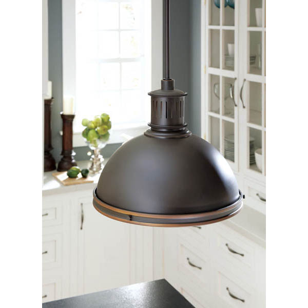 The Pratt Street Metal three light indoor pendant in autumn bronze enhances the beauty of your home with ample light and style to match today's trends. Inspired by industrial lighting, the hard-working, large-scale Pratt Street metal pendants by put light where you need it, while making a significant design statement. Offered in a choice of Brushed Nickel, Satin Bronze or Autumn Bronze finishes, the one-light, two-light and three-light pendants are all fully enclosed with a prismatic diffusor at the bottom to spread light output evenly and alleviate glare. The pendants are available in incandescent and ENERGY STAR-qualified LED versions, and all can easily convert to LED by purchasing LED replacement lamps sold separately.