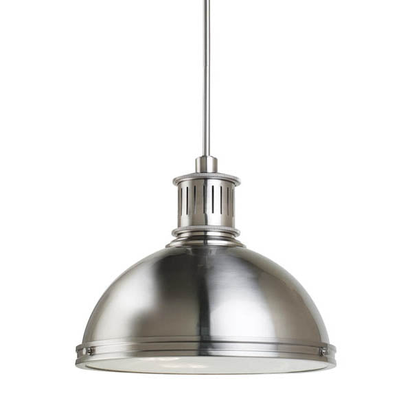 The Pratt Street Metal three light indoor pendant enhances the beauty of your home with ample light and style to match today's trends. Inspired by industrial lighting, the hard-working, large-scale Pratt Street metal pendants by put light where you need it, while making a significant design statement. Offered in a choice of Brushed Nickel, Satin Bronze or Autumn Bronze finishes, the one-light, two-light and three-light pendants are all fully enclosed with a prismatic diffusor at the bottom to spread light output evenly and alleviate glare. The pendants are available in incandescent and ENERGY STAR-qualified LED versions, and all can easily convert to LED by purchasing LED replacement lamps sold separately.