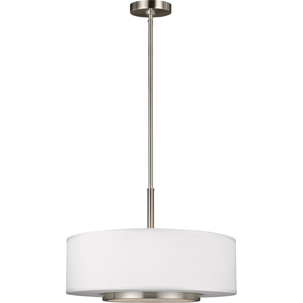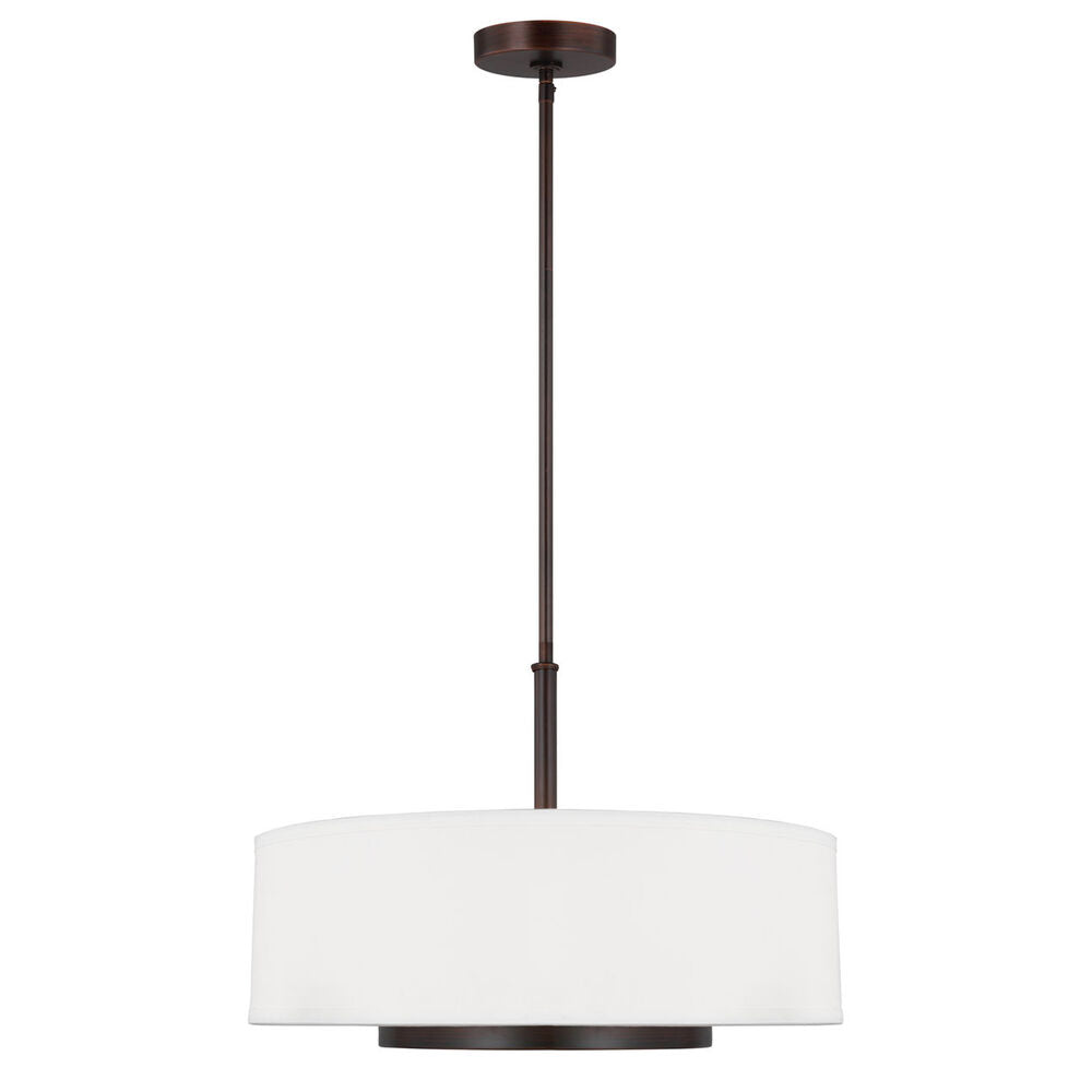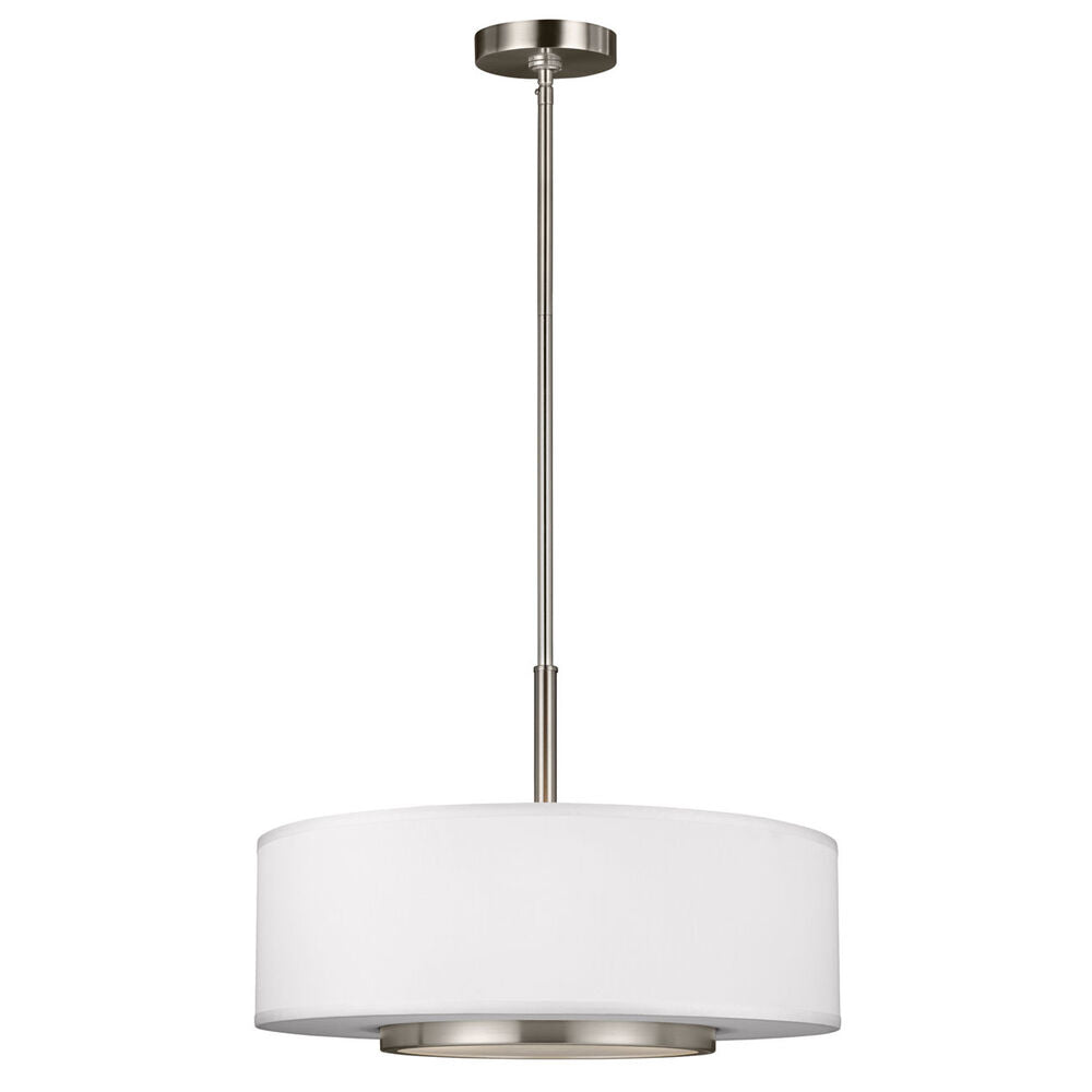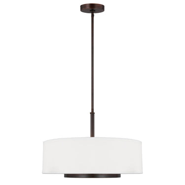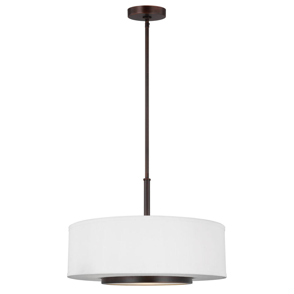 The Nance three light indoor pendant in bronze is the perfect way to achieve your desired fashion or functional needs in your home. The mid-century inspired Nance lighting collection by is a versatile transitional design which fits in a wide array of traditional or contemporary settings. The tapered, off-white, faux silk shades add warmth and sophistication. The large pendant and semi-flush faux silk drum shades are complemented nicely with Satin Etched Opal glass diffusers to soften the downlight. In either of the available Brushed Nickel or Heirloom Bronze finishes, all the Nance fixtures are timeless additions to any foyer, kitchen or dining area. The assortment includes three- five- and nine-light chandeliers; a one-light wall sconce; two- and three-light bath vanities and a two-light semi-flush convertible drum pendant. Incandescent and ENERGY STAR-qualified LED lamping are available; all fixtures are California Title 24 compliant.